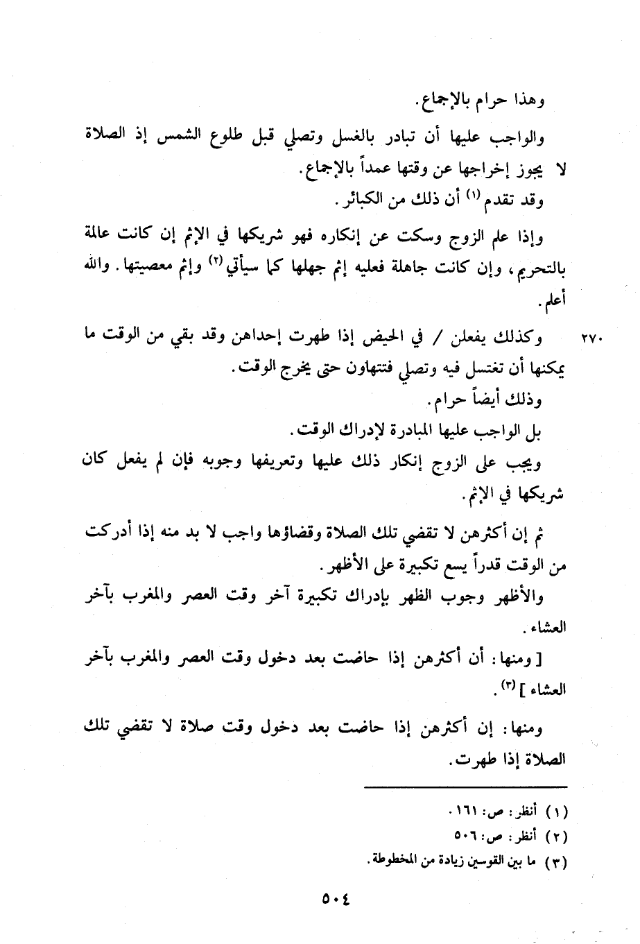 وكذلك يفعلن/ في الحيض إذا طهرت إحداهن وقد بقي من الوقت ما يمكنها أن تغتسل فيه وتصلي فتتهاون حتى يخرج الوقت.