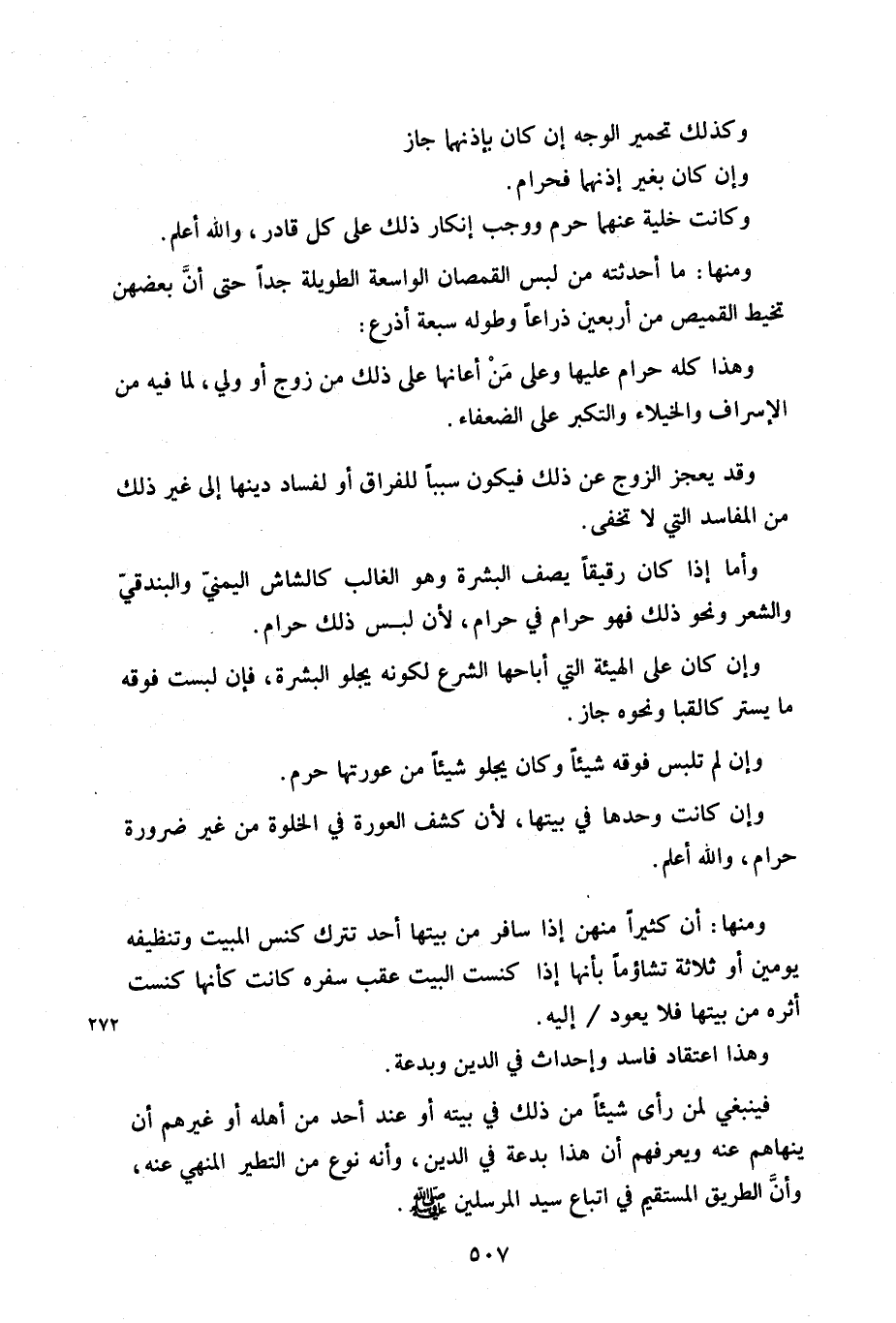 ومنها: ما أحدثته من لبس القمصان الواسعة الطويلة جداً حتى أنَّ بعضهن تخيط القميص من أربعين ذراعاً وطوله سبعة أذرع: