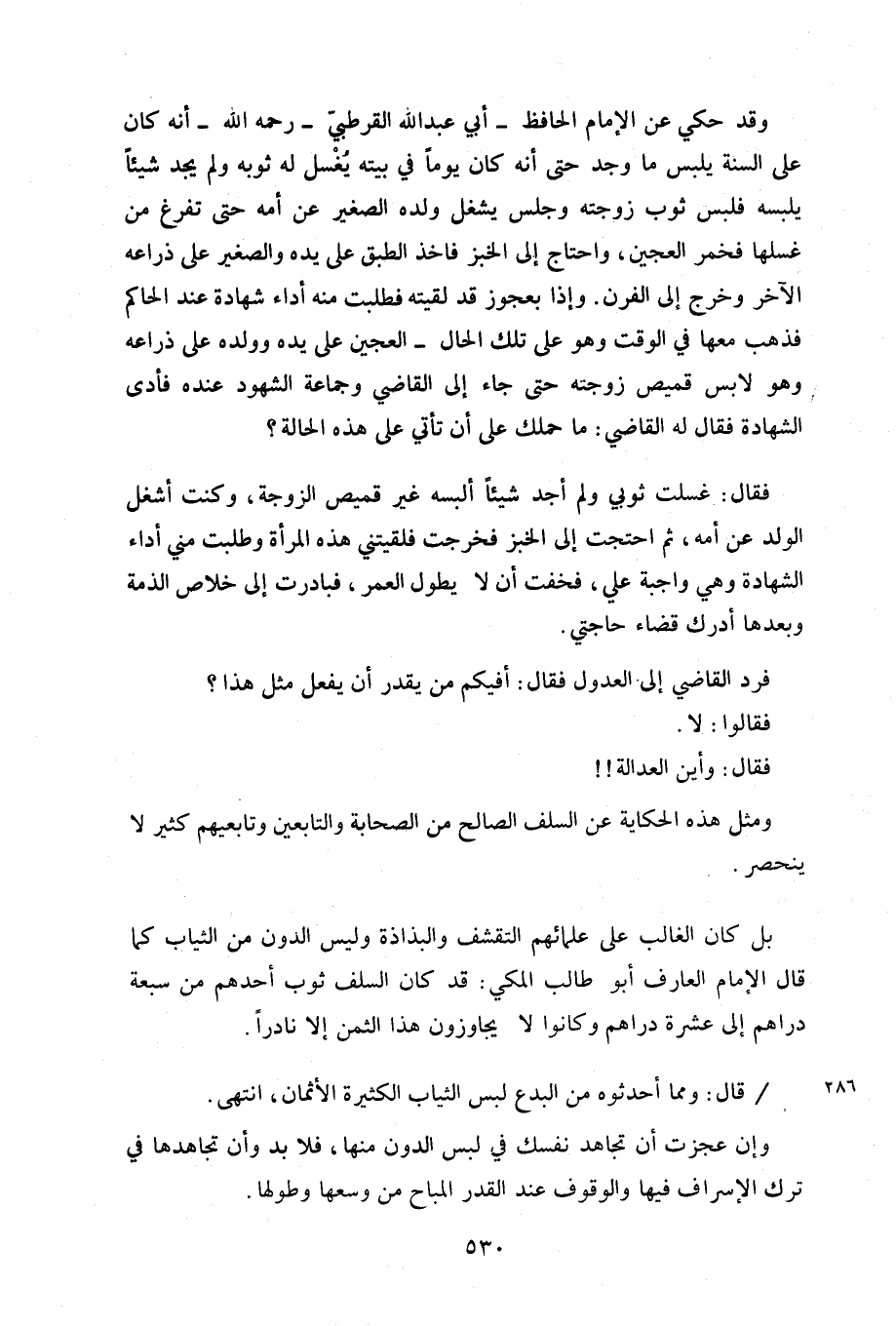286 / قال: ومما أحدثوه من البدع لبس الثياب الكثيرة الأثمان، انتهى.