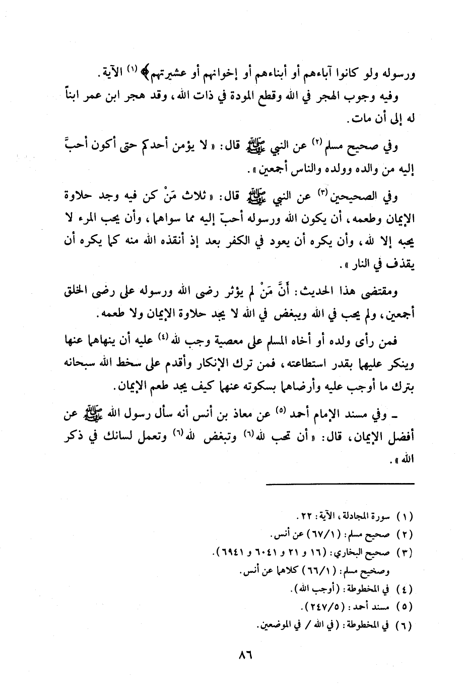 وفي الصحيحين عن النبي صلى الله عليه وسلم قال: «ثلاث من كن فيه وجد حلاوة الإيمان وطعمه، أن يكون الله ورسوله أحب إليه مما سواهما، وأن يحب المرء لا يحبه إلا لله، وأن يكره أن يعود في الكفر بعد إذ أنقذه الله منه كما يكره أن يقذف في النار».