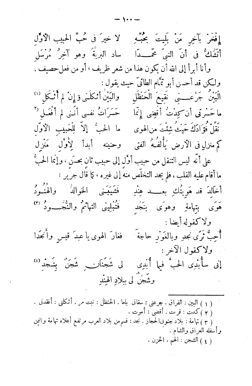 وأنا أبرأ إلى الله أن يكون هذا من شعرِ ظريفٍ أو من فعل حَصيفٍ، ولكن قد أحسن أبو تمام الطائي حيث يقول: