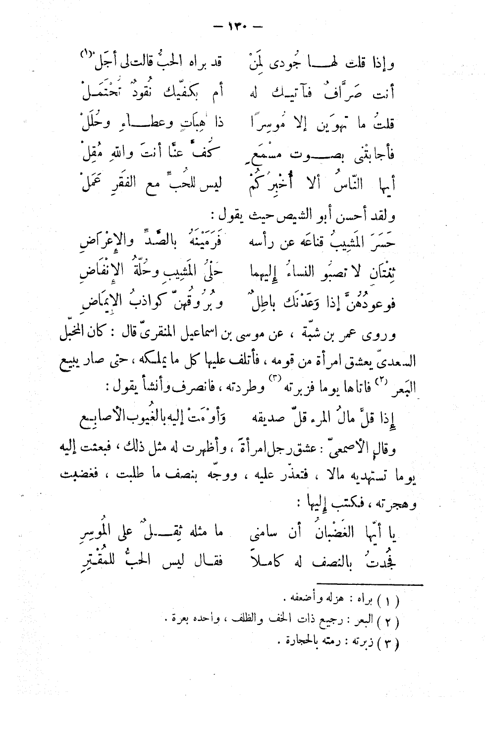 وقال الأصمعي: عشق رجلٌ امرأة، وأظهرت له مثل ذلك، فبعثت إليه يوماً تستهديه مالاً، فتعذّر عليه، ووجّه بنصف ما طلبت، فغضبت وهجرته، فكتب إليه: