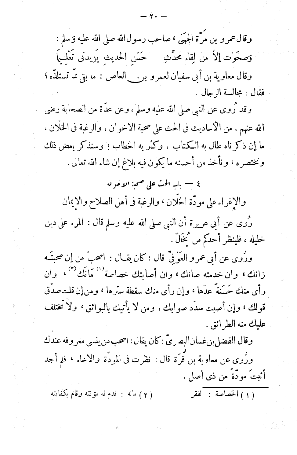 الحث على صحبة الإخوان، والرغبة في الخلان، ما إن ذكرناه طال به الكتاب، وكثر به الخطاب. وسنذكر بعض ذلك ونختصره، ونأخذ من أحسنه ما يكون فيه بلاغ، إن شاء الله تعالى.