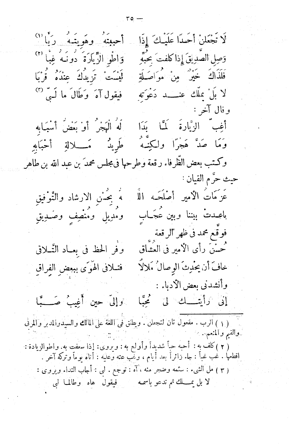 وكتب بعض الظرفاء رقعة، وطرحها في مجلس محمد بن عبد الله بن طاهر حيث حرم القيان: