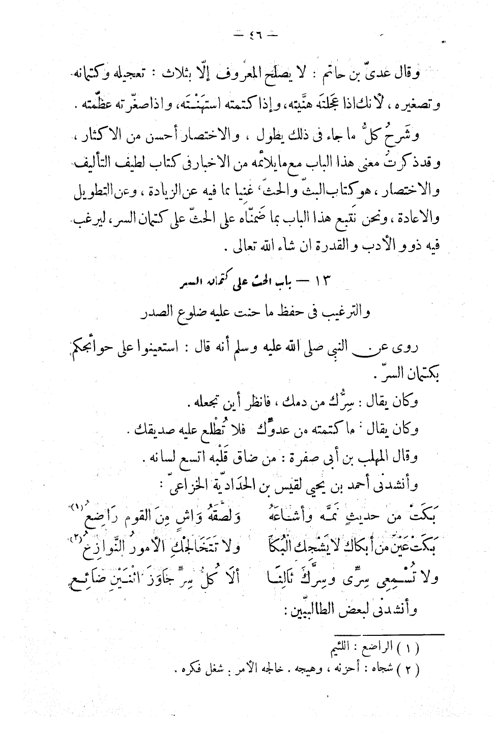 الحث على كتمان السر ليرغب فيه ذوو الأدب والقدرة، إن شاء الله تعالى.