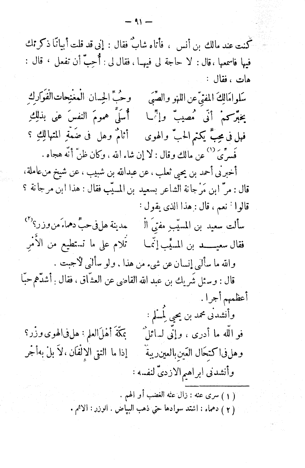 سألتُ سعيد بن المسيَّب مفتي ال ... مدينة: هل في حب دهماء من وِزر