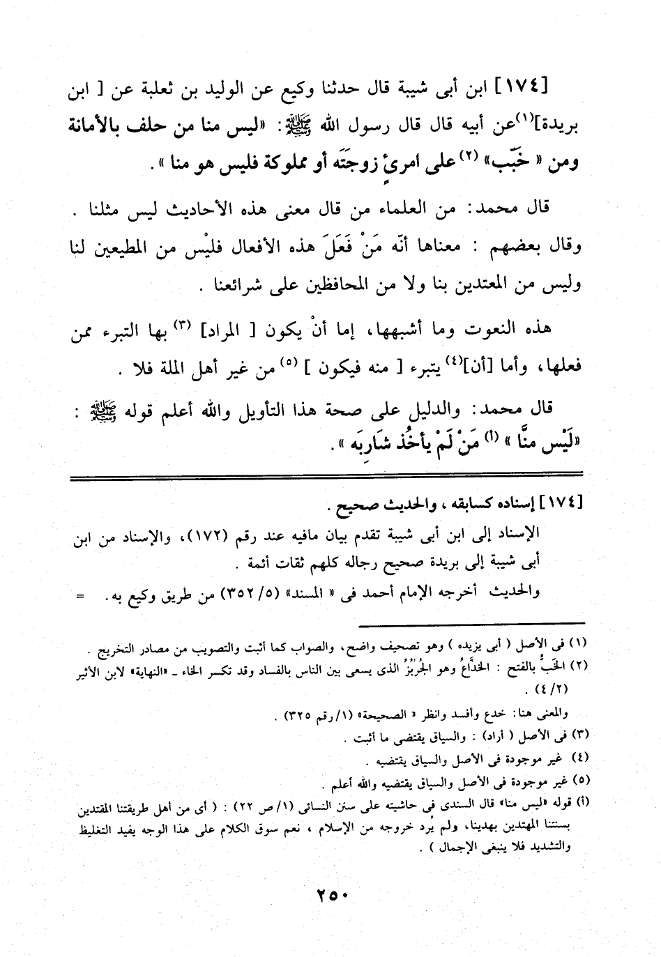 قَالَ مُحَمَّدٌ: مِنْ اَلْعُلَمَاءِ مَنْ قَالَ: مَعْنَى هَذِهِ اَلْأَحَادِيثِ لَيْسَ مِثْلَنَا، وَقَالَ بَعْضُهُمْ: مَعْنَاهَا أَنَّهُ مَنْ فَعَلَ هَذِهِ اَلْأَفْعَالَ فَلَيْسَ مِنْ اَلْمُطِيعِينَ لَنَا وَلَيْسَ مِنْ اَلْمُقْتَدِينَ بِنَا وَلَا مِنْ اَلْمُحَافِظِينَ عَلَى شَرَائِعِنَا.