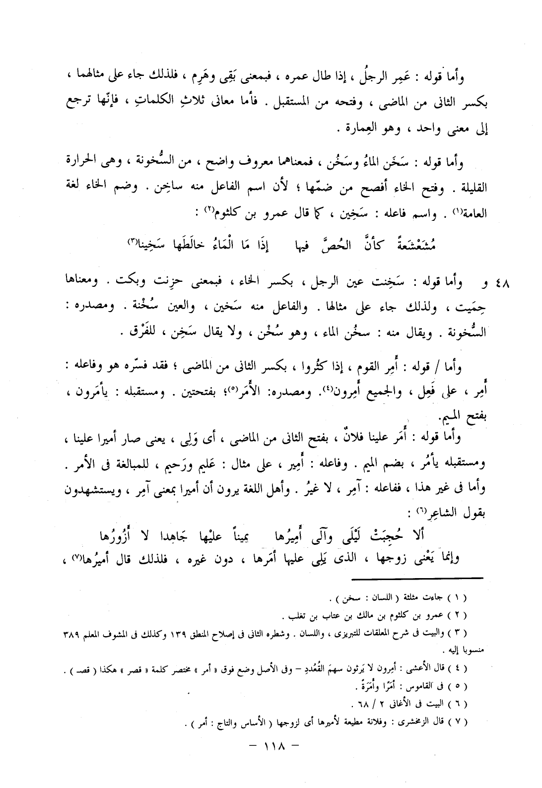 وأما قوله: عمر الرجل، إذا طال عمره، فبمعنى بقي وهرم، فلذلك جاء على مثالهما، بكسر الثاني من الماضي، وفتحه من المستقبل، أما معاني ثلاث الكلمات، فإنها ترجع إلى معنى واحد، وهو العمارة.
