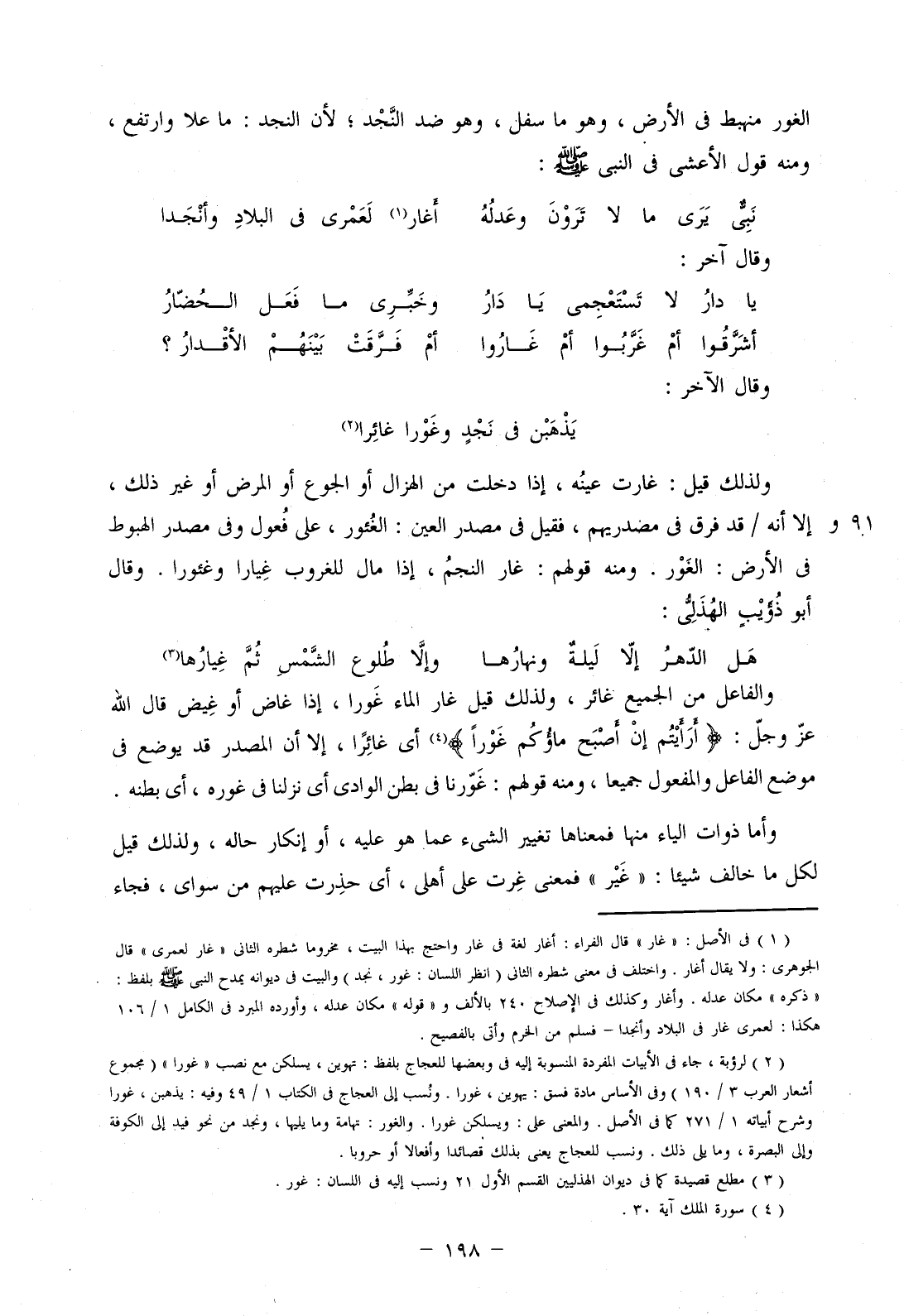الغور منهبط في الأرض، وهو ما سفل، وهو ضد النجد؛ لأن النجد: ما علا وارتفع، ومنه قول الأعشى في النبي صلى الله عليه وسلم: