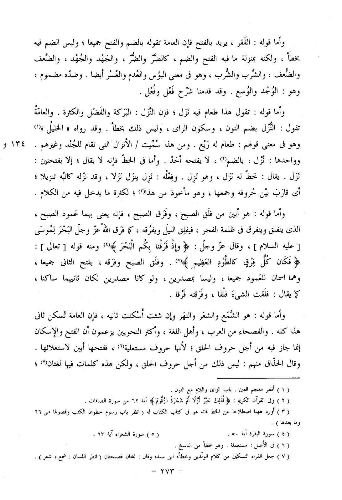 وأما قوله: هو أبين من فلق الصبح، وفرق الصبح، فإنه يعني بهما عمود الصبح، الذي ينفلق وينفرق في ظلمة الفجر، فيلفلق الليل ويفرقه، كما فرق الله عز وجل البحر لموسى [عليه السلام]، وقال عز وجل: (وإذْ فَرَقْنَا بِكُمُ البَحْرَ) ومنه قوله [تعالى]: (فَكَانَ كُلُّ فِرْقٍ كَالطَّوْدِ العَظِيمِ). وفلق الصبح وفرقه، بفتح الثاني جميعا، وهما اسمان للعمود جميعا، وليسا بمصدرين، ولو كانا مصدرين لكان ثانيهما ساكنا، كما يقال: فلقت الشيء فلقا، وفرقته فرقا.