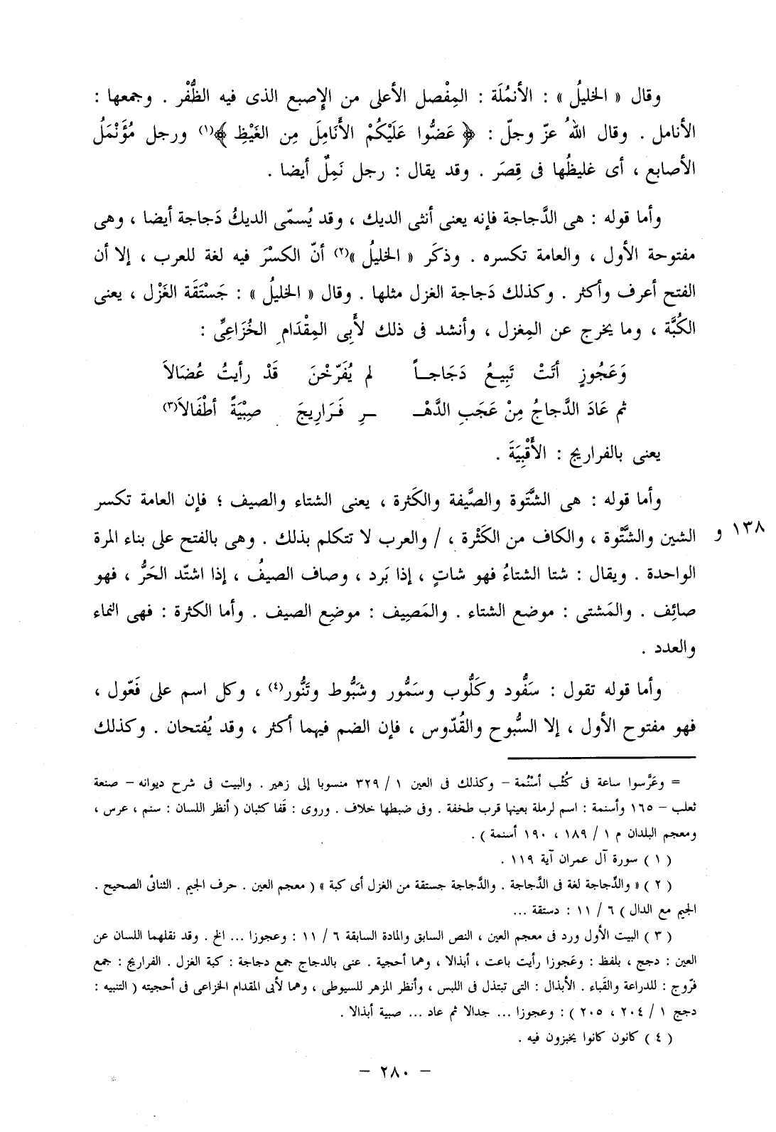 وأما قوله: هي الشتوة والصيفة والكثرة، يعني الشتاء والصيف؛ فإن العامة تكسر الشين والشتوة، والكاف من الكثرة، / والعرب لا تتكلم بذلك. وهي بالفتح على بناء المرة الواحدة. ويقال: شتا الشتاء فهو شات، إذا برد، وصاف الصيف، إذا اشتد الحر، فهو صائف. والمشتى: موضع الشتاء. والمصيف: موضع الصيف. وأما الكثيرة: فهي النماء والعدد.