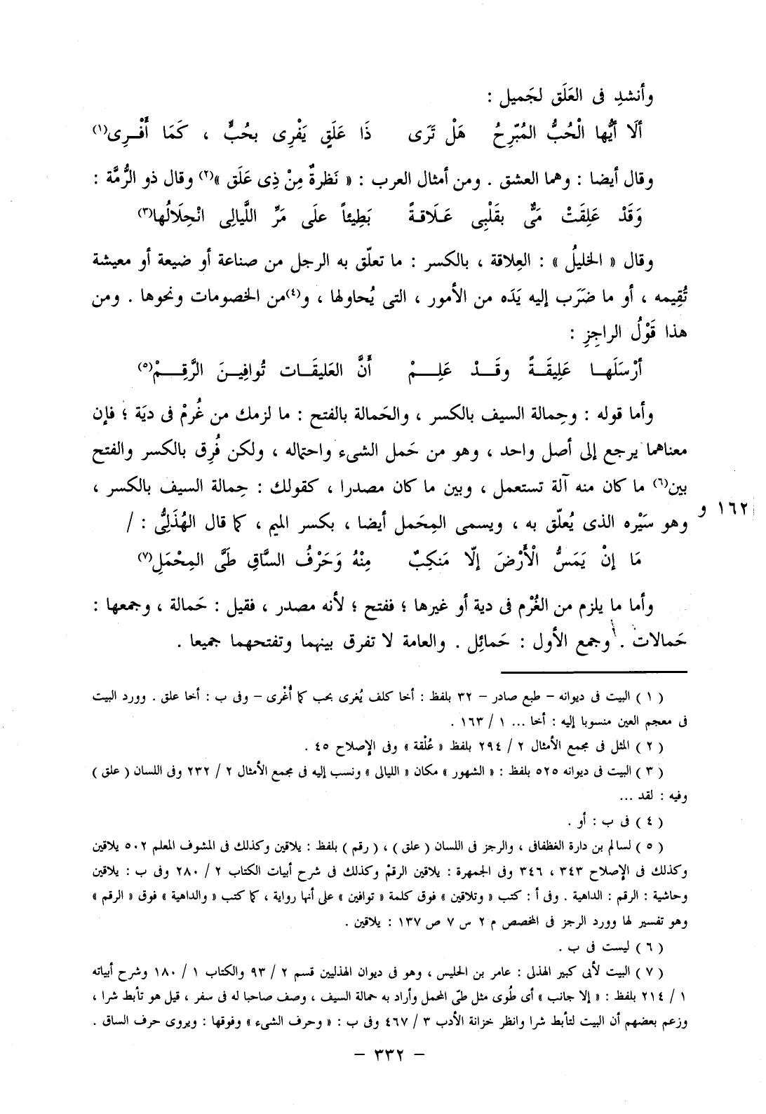 وقال أيضا: وهما العشق. ومن أمثال اللعرب: "نظرة من ذي علق" وقال ذو الرمة: