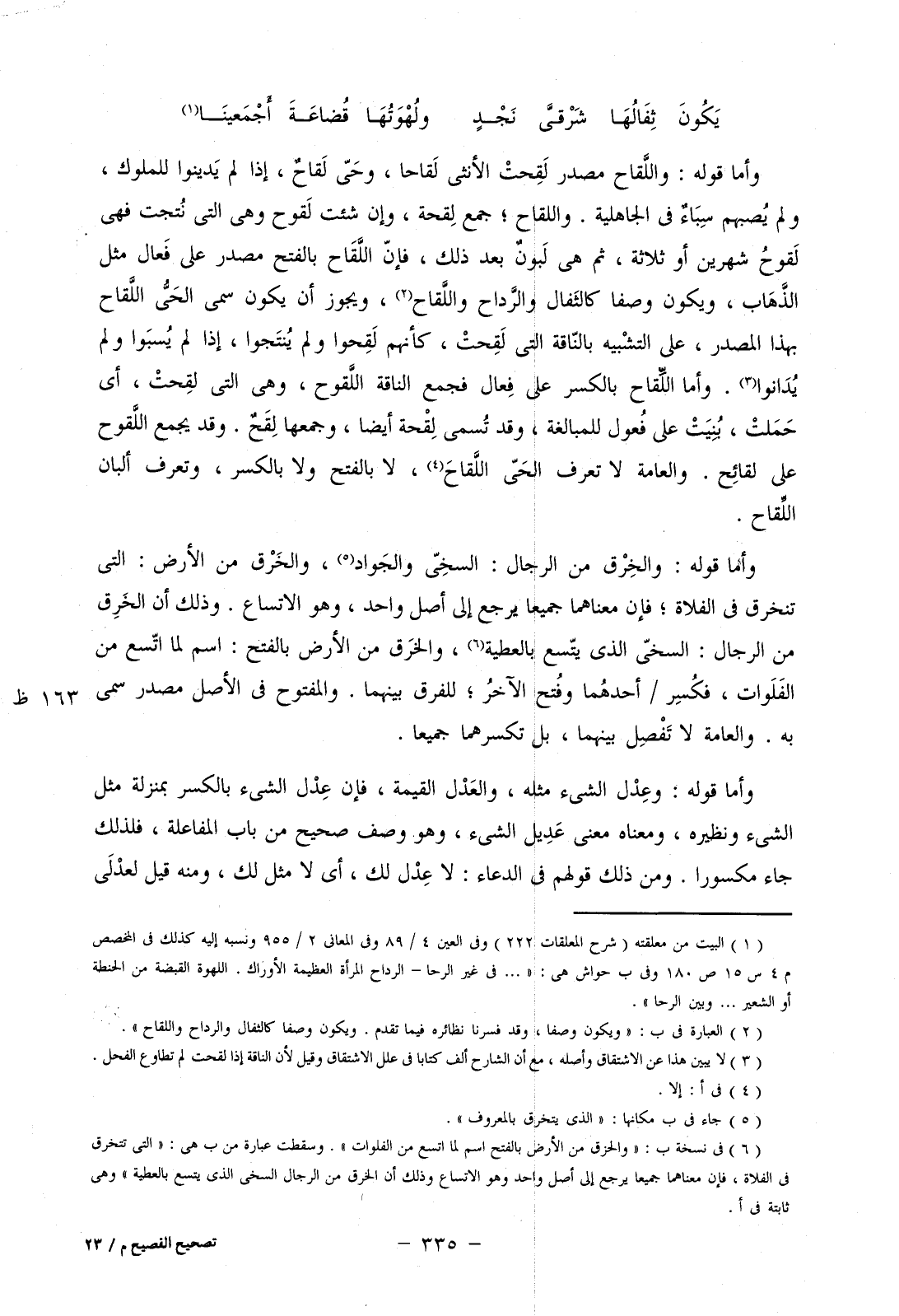 وأما قوله: واللقاح مصدر لقحت الأنثى لقاحا، وحي لقاح، إذا لم يدينوا للملوك، ولم يصبهم سباء في الجاهلية. واللقاح؛ جمع لقحة، وإن شئت لقوح وهي التي نتجت فهي لقوح شهرين أو ثلاثة، ثم هي لبون بعد ذلك، فإن اللقاح بالفتح مصدر على فعال مثل الذهاب، ويكون وصفا كالثفال والرداح واللقاح، ويجوز أن يكون سمي الحي اللقاح بهذا المصدر، على التشبيه بالناقة التي لقحت، كأنهم لقحوا ولم ينتجوا، إذا لم يسبوا ولم يدانوا. وأما اللقاح بالكسر على فعال فجمع الناقة اللقوح، وهي التي لقحت، أي حملت، بنيت على فعول للمبالغة، وقد تسمى لقحة أيضا، وجمعها لقح. وقد يجمع اللقوح على لقائح. والعامة لا تعرف الحي اللقاح، لا بالفتح ولا بالكسر، وتعرف ألبان اللقاح.