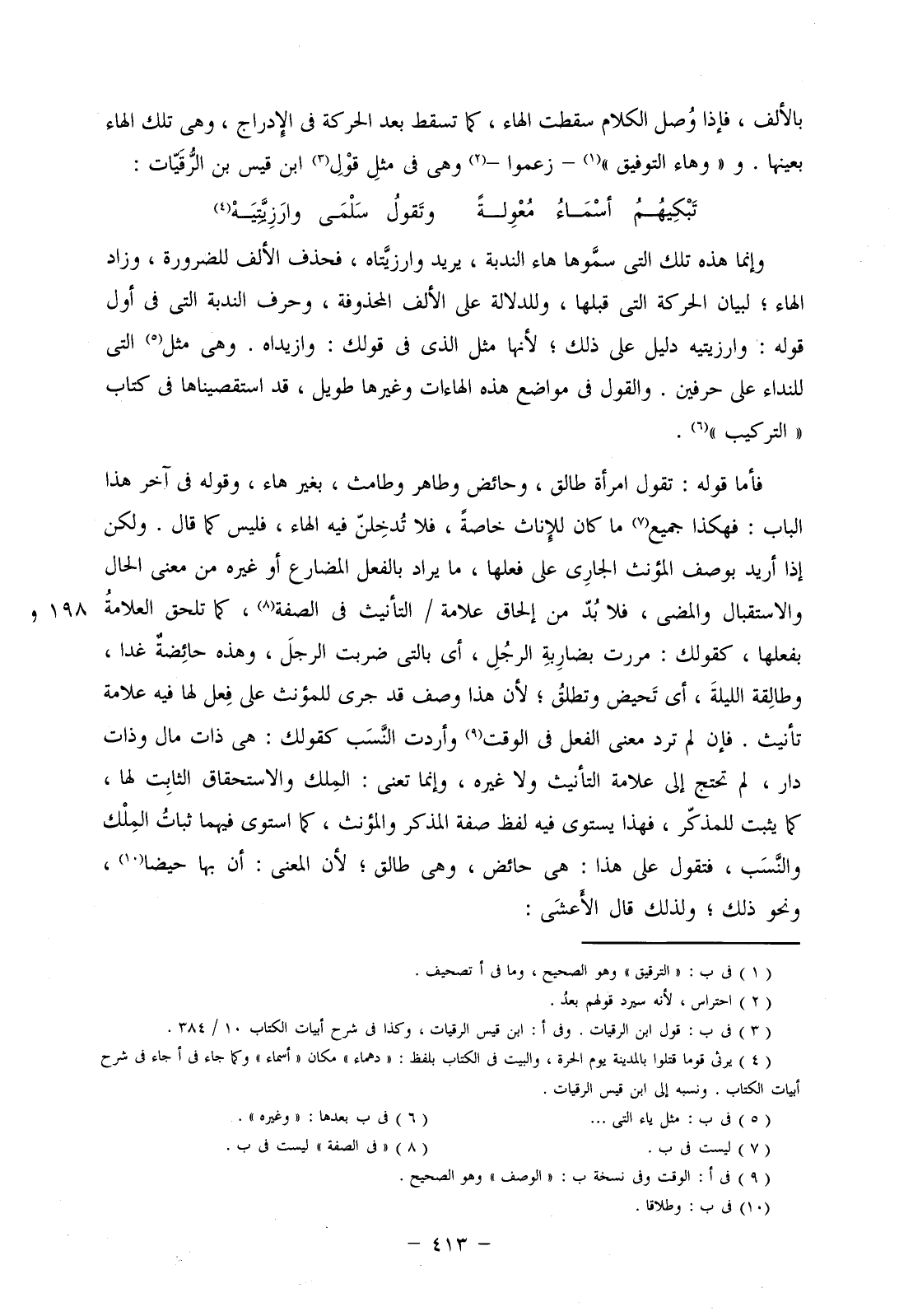 بالألف، فإذا وصل الكلام سقطت الهاء، كما تسقط بعد الحركة في الإدراج، وهي تلك الهاء بعينها. و"هاء التوفيق"- زعموا- وهي في مثل قول ابن قيس بن الرقيات: