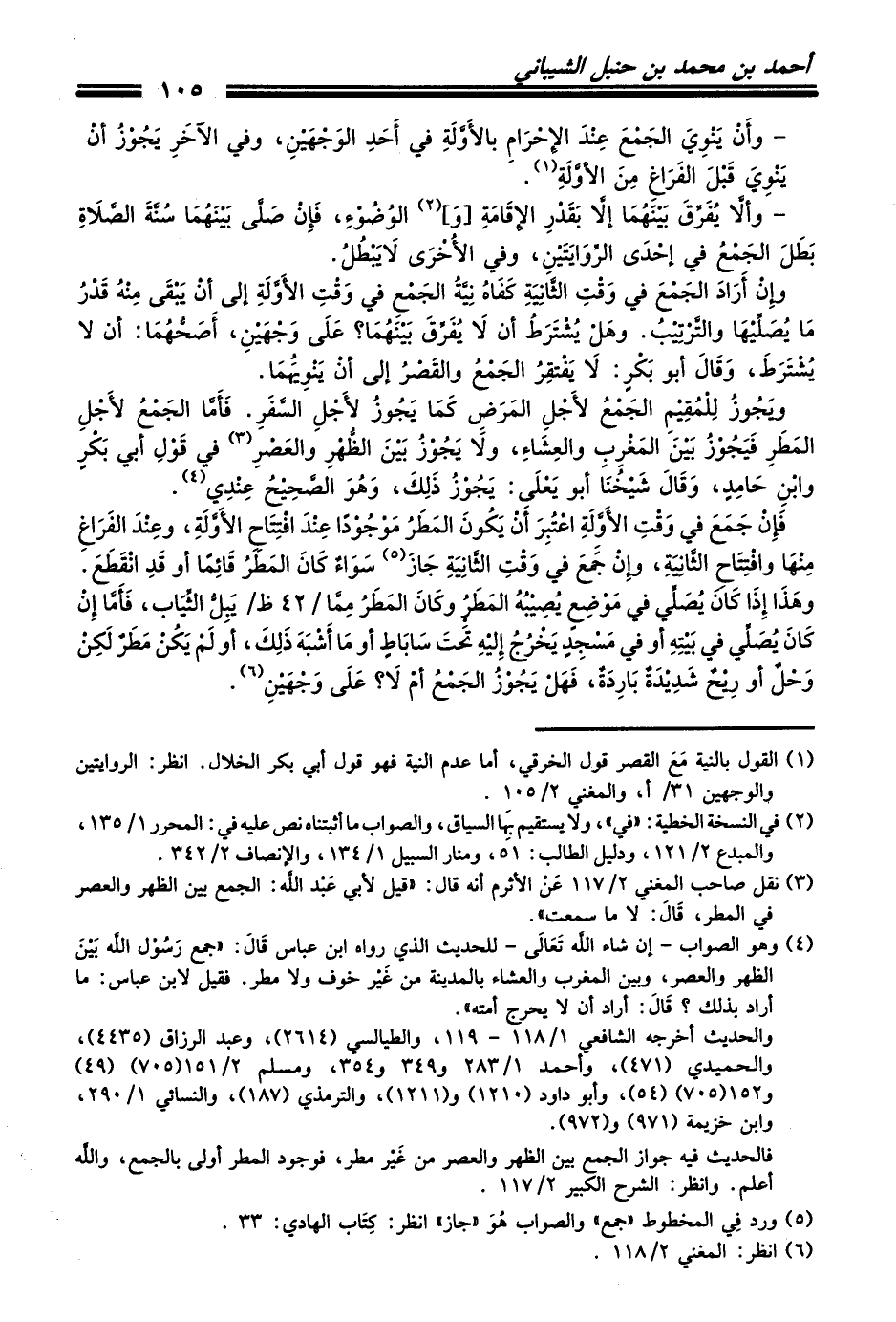 (¬3) نقل صاحب المغني 2/ 117 عَنْ الأثرم أنه قال: ((قيل لأبي عَبْد الله: الجمع بين الظهر والعصر في المطر، قَالَ: لا ما سمعت)).
