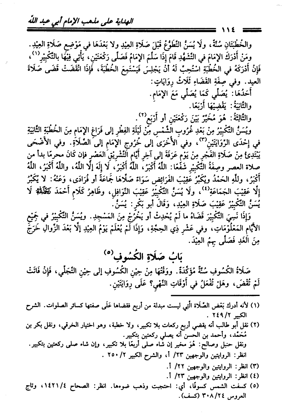صَلاَةُ الكُسُوفِ سُنَّةٌ مُؤَكَّدَةٌ. ووَقْتُهَا مِنْ حِيْنِ الكُسُوفِ إلى حِيْنِ التَّجَلِّي، فَإِنْ فَاتَتْ لَمْ تُقْضَ، وهَلْ تُفْعَلُ في أَوْقَاتِ النَّهْيِ؟ عَلَى رِوَايَتَيْنِ.