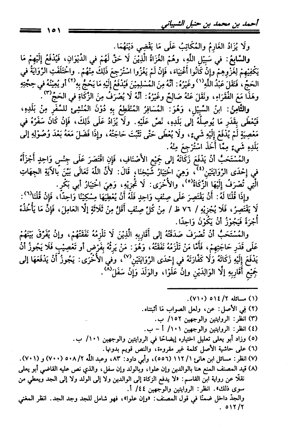 (¬7) انظر: مسائل ابن هانئ 1/ 112 (556)، وأبي داود: 83، وعبد الله 2/ 508 (700) و (701).