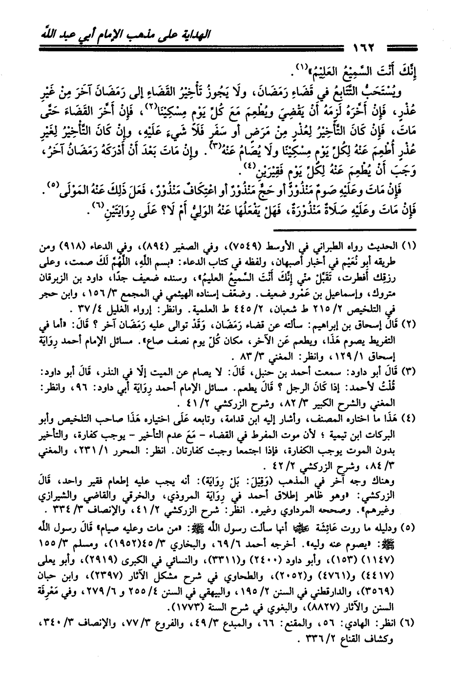 (¬6) انظر: الهادي: 56، والمقنع: 66، والمبدع 3/ 49، والفروع 3/ 77، والإنصاف 3/ 340، وكشاف القناع 2/ 336.