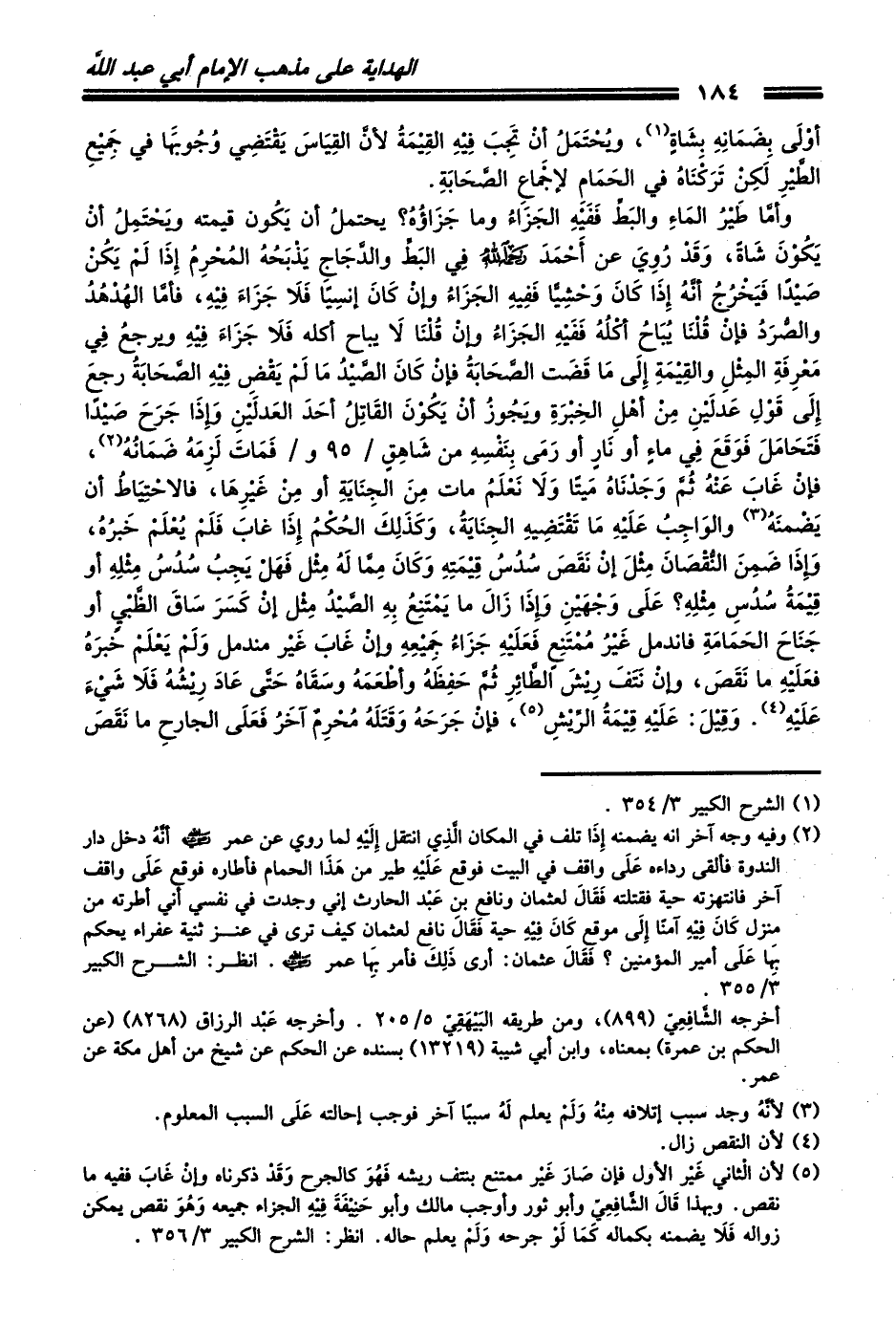 وأمَّا طَيْرُ المَاءِ والبَطِّ فَفَيْهِ الجَزَاءُ وما جَزَاؤُهُ؟ يحتملُ أن يَكُون قيمته ويَحْتَمِلُ أنْ يَكُوْنَ شَاةً، وَقَدْ رُوِيَ عن أَحْمَدَ - رَحِمَهُ اللهُ - فِي البَطِّ والدَّجَاجِ يَذْبَحُهُ المُحْرِمُ إِذَا لَمْ يَكُنْ صَيْداً فَيَخْرُجُ أنَّهُ إِذَا كَانَ وَحْشِيّاً فَفِيهِ الجَزَاءُ وإنْ كَانَ إنسِيَاً فَلاَ جَزَاءَ فِيْهِ، فأمَّا الهُدْهُدُ والصُّرَدُ فإنْ قُلْنَا يُبَاحُ أكْلُهُ فَفَيْهِ الجَزَاءُ وإنْ قُلْنَا لاَ يباح أكله فَلاَ جَزَاءَ فِيْهِ ويرجعُ فِي مَعْرِفَةِ المِثْلِ والقِيْمَةِ إِلَى مَا قَضَت الصَّحَابَةُ فإنْ كَانَ الصَّيْدُ مَا لَمْ يَقْضِ فِيْهِ الصَّحَابَةُ رجعَ إِلَى قَوْلِ عَدلَيْنِ مِنْ أهْلِ الخِبْرَةِ ويَجُوزُ أنْ يَكُوْنَ القَاتِلُ أحَدَ العَدلَيْنِ وَإِذَا جَرَحَ صَيْداً فَتَحَامَلَ فَوَقَعَ فِي ماءٍ أو نَارٍ أو رَمَى بِنَفْسِهِ من شَاهِقٍ / 95 و / فَمَاتَ لَزِمَهُ ضَمَانُهُ (¬2)، فإنْ غَابَ عَنْهُ ثُمَّ وَجَدْنَاهُ مَيتاً وَلاَ نَعْلَمُ مات مِنَ الجِنَايَةِ أو مِنْ غَيْرِهَا، فالاحْتِيَاطُ أن يَضْمنَهُ (¬3) والوَاجِبُ عَلَيْهِ مَا تَقْتَضِيهِ الجِنَايَةُ، وَكَذَلِكَ الحُكْمُ إِذَا غابَ فَلَمْ يُعْلَمْ خَبرُهُ، وَإِذَا ضَمِنَ النُّقْصَانَ مِثْلَ إنْ نَقَصَ سُدُسُ قِيْمَتِهِ وَكَانَ مِمَّا لَهُ مِثْل فَهَلْ يَجِبُ سُدُسُ مِثْلِهِ أو قِيْمَةُ سُدُسِ مِثْلِهِ؟ عَلَى وَجْهَيْنِ وَإِذَا زَالَ ما يَمْتَنِعُ بِهِ الصَّيْدُ مِثْل إنْ كَسَرَ سَاقَ الظَّبْيِ أو جَنَاحَ الحَمَامَةِ فاندمل غَيْرُ مُمْتَنِعٍ فَعَلَيْهِ جَزَاءُ جَمِيْعِهِ وإنْ غَابَ غَيْر مندمل وَلَمْ يَعْلَمْ خَبرَهُ فعَلَيْهِ ما نَقَصَ، وإنْ نَتَفَ رِيْشَ الطَّائِرِ ثُمَّ حَفِظَهُ وأطْعَمَهُ وسَقَاهُ حَتَّى عَادَ رِيْشُهُ فَلاَ شَيْءَ عَلَيْهِ (¬4). وَقِيْلَ: عَلَيْهِ قِيْمَةُ الرِّيْشِ (¬5)، فإنْ جَرَحَهُ وَقَتَلَهُ مُحْرِمٌ آخَرُ فَعَلَى الجارحِ ما نَقَصَ