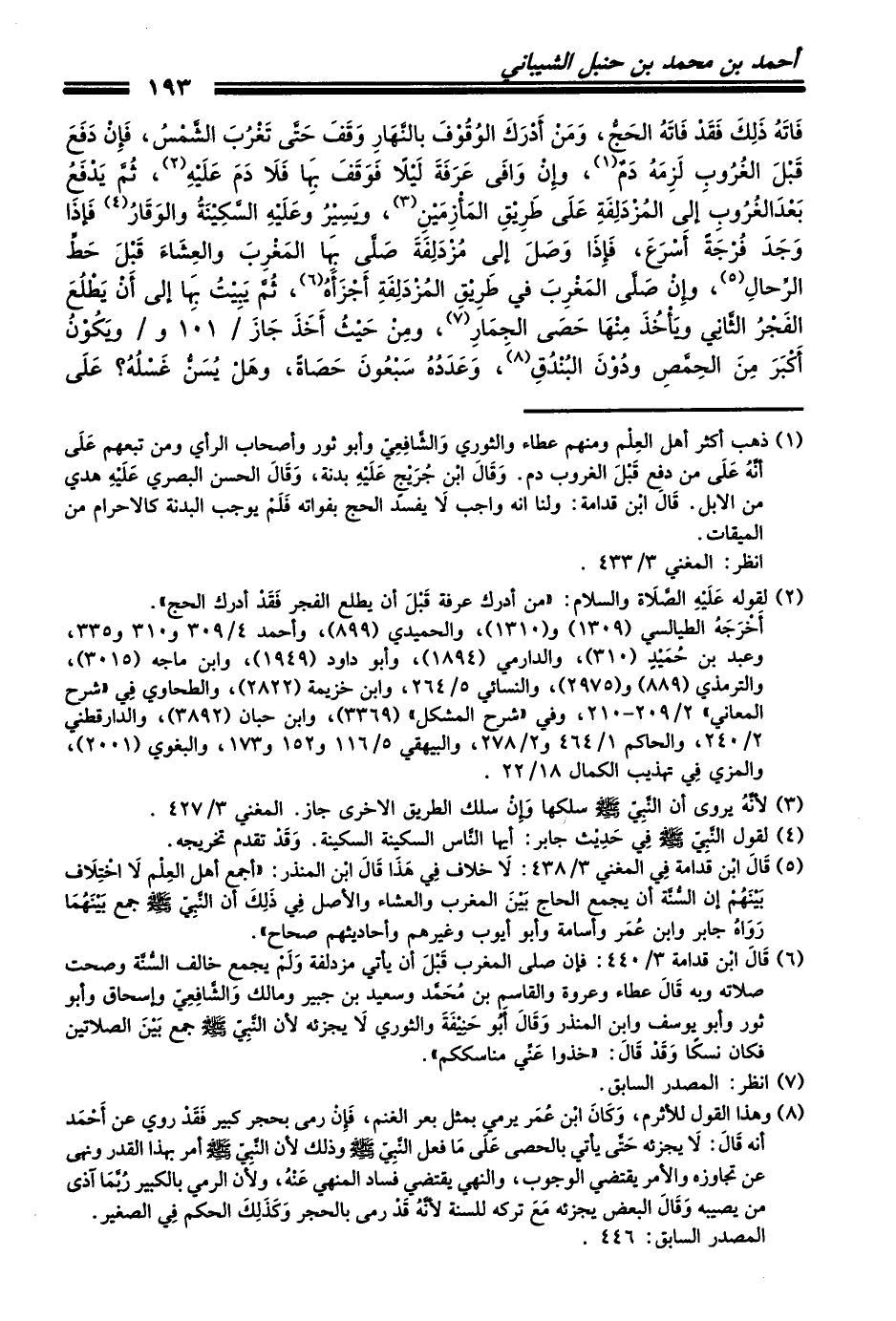 (¬5) قَالَ ابْن قدامة فِي المغني 3/ 438: لاَ خلاف فِي هَذَا قَالَ ابْن المنذر: ((أجمع أهل العِلْم لاَ اخْتِلاَف بَيْنَهُمْ إن السُّنَّة أن يجمع الحاج بَيْنَ المغرب والعشاء والأصل فِي ذَلِكَ أن النَّبِيّ - صلى الله عليه وسلم - جمع بَيْنَهُمَا رَوَاهُ جابر وابن عُمَر وأسامة وأبو أيوب وغيرهم وأحاديثهم صحاح)).