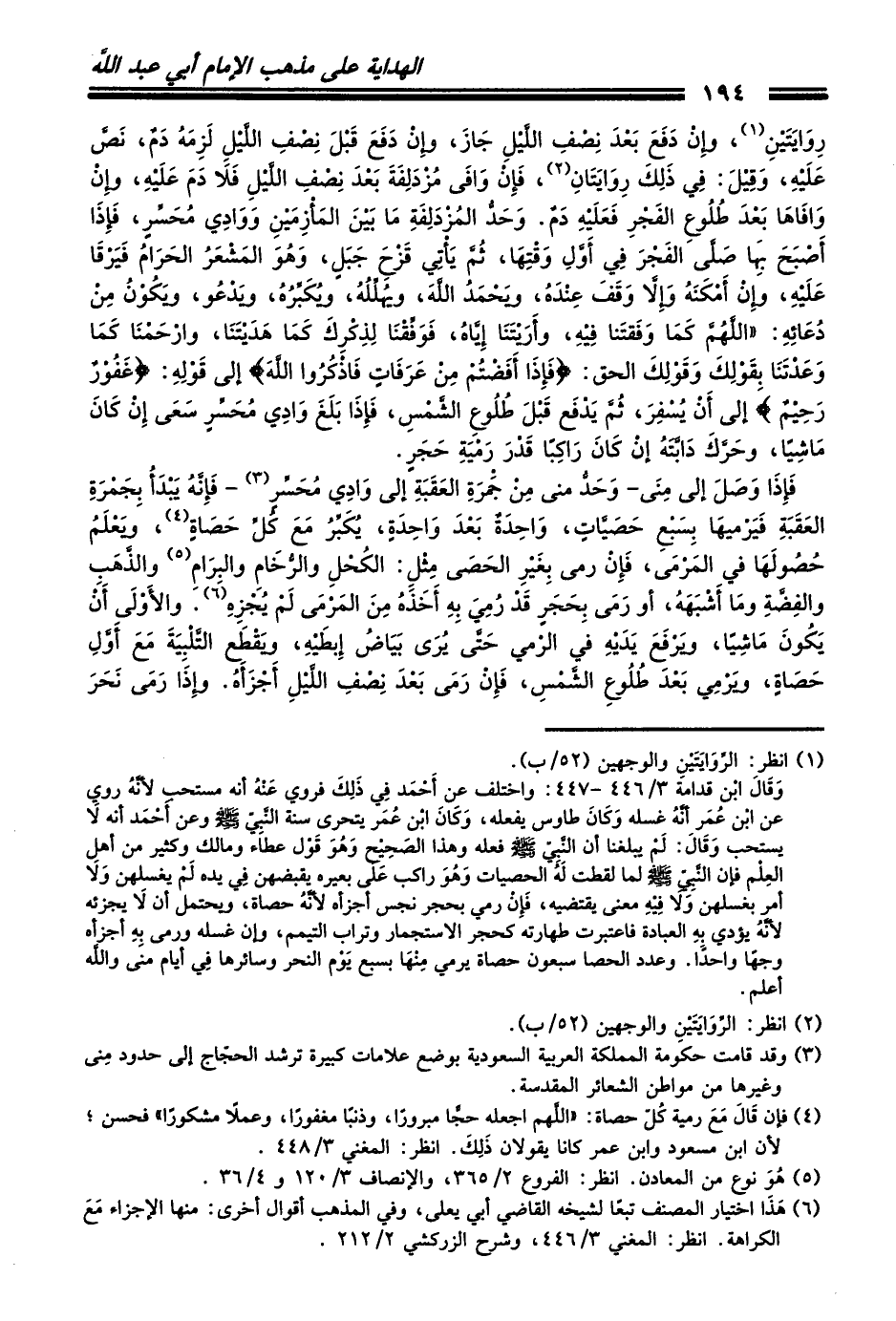 رِوَايَتَيْنِ (¬1)، وإِنْ دَفَعَ بَعْدَ نِصْفِ اللَّيْلِ جَازَ، وإِنْ دَفَعَ قَبْلَ نِصْفِ اللَّيْلِ لَزِمَهُ دَمٌ، نَصَّ عَلَيْهِ، وَقِيْلَ: فِي ذَلِكَ رِوَايَتَانِ (¬2)، فَإِنْ وَافَى مُزْدَلِفَةَ بَعْدَ نِصْفِ اللَّيْلِ فَلاَ دَمَ عَلَيْهِ، وإِنْ وَافَاهَا بَعْدَ طُلُوعِ الفَجْرِ فَعَلَيْهِ دَمٌ. وَحَدُّ المُزْدَلِفَةِ مَا بَيْنَ المَأْزِمَيْنِ وَوَادِي مُحَسِّرٍ، فَإِذَا أَصْبَحَ بِهَا صَلَّى الفَجْرَ فِي أَوَّلِ وَقْتِهَا، ثُمَّ يَأْتِي قَزْحَ جَبَلٍ، وَهُوَ المَشْعَرُ الحَرَامُ فَيَرْقَا عَلَيْهِ، وإِنْ أَمْكَنَهُ وَإِلاَّ وَقَفَ عِنْدَهُ، ويَحْمَدُ اللهَ، ويُهَلِّلُهُ، ويُكَبِّرُهُ، ويَدْعُو، ويَكُوْنُ مِنْ دُعَائِهِ: ((اللَّهُمَّ كَمَا وَفَقتَنا فِيْهِ، وأَرَيْتَنَا إِيَّاهُ، فَوَفِّقْنَا لِذِكْرِكَ كَمَا هَدَيْتَنَا، وارْحَمْنَا كَمَا وَعَدْتَنَا بِقَوْلِكَ وَقَوْلِكَ الحق: {فَإِذَا أَفَضْتُمْ مِنْ عَرَفَاتٍ فَاذْكُرُوا اللَّهَ} إلى قَوْلِهِ: {غَفُوْرٌ رَحِيْمٌ} إلى أَنْ يُسْفِرَ، ثُمَّ يَدْفَعُ قَبْلَ طُلُوعِ الشَّمْسِ، فَإِذَا بَلَغَ وَادِي مُحَسِّرٍ سَعَى إِنْ كَانَ مَاشِياً، وحَرَّكَ دَابَّتَهُ إنْ كَانَ رَاكِباً قَدْرَ رَمْيَةِ حَجَرٍ.