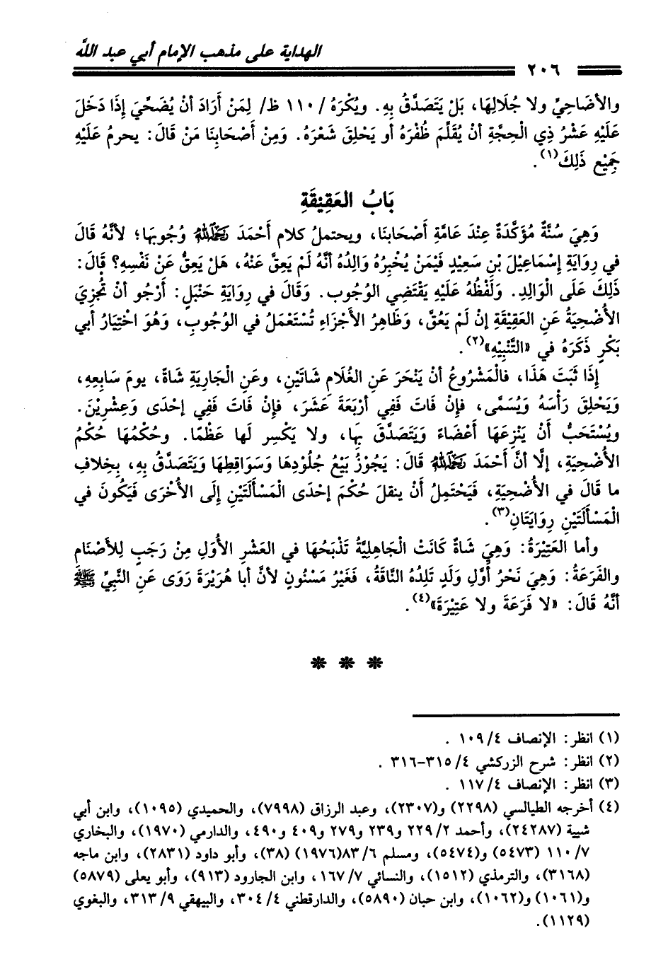 وَهِيَ سُنَّةٌ مُؤَكَّدَةٌ عِنْدَ عَامَّةِ أَصْحَابنَا، ويحتملُ كلام أَحْمَدَ - رضي الله عنه - وُجُوبهَا؛ لأنَّهُ قَالَ في رِوَايَةِ إِسْمَاعِيْلَ بْنِ سَعِيْدٍ فَيْمَنْ يُخْبِرُهُ وَالِدُهُ أنَّهُ لَمْ يَعِقَّ عَنْهُ، هَلْ يَعِقُّ عَنْ نَفْسِهِ؟ قَالَ: ذَلِكَ عَلَى الْوَالِدِ. وَلَفْظُهُ عَلَيْهِ يَقْتَضِي الوُجُوب. وَقَالَ في رِوَايَةِ حَنْبَلٍ: أَرْجُو أنْ تُجْزِيَ الأُضْحِيَةُ عَنِ العَقِيْقَةِ إنْ لَمْ يَعُقَّ، وَظَاهِرُ الأَجْزَاءِ تُسْتَعْمَلُ في الوُجُوبِ، وَهُوَ اخْتِيَارُ أبي بَكْرٍ ذَكَرَهُ في " التَّنْبِيْهِ " (¬2).