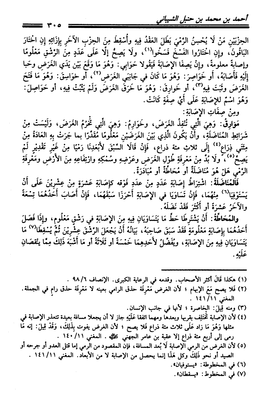 (¬5) لأن الغرض من الرمي الإصابة لاَ بُعد المسافة، فإن المقصود من الرمي إما قتل العدو أو جرحه أو الصيد أو نحو ذَلِكَ وكل هَذَا إنما يحصل من الإصابة لا من الأبعاد. المغني 11/ 141.