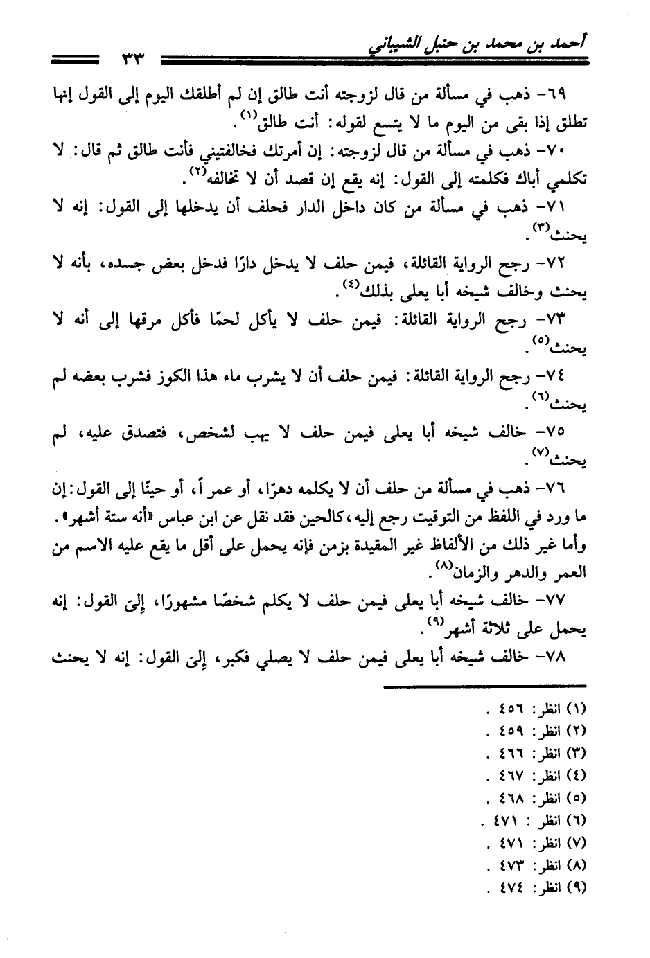 77 - خالف شيخه أبا يعلى فيمن حلف لا يكلم شخصاً مشهوراً، إِلىَ القول: إنه يحمل على ثلاثة أشهر. (¬9)