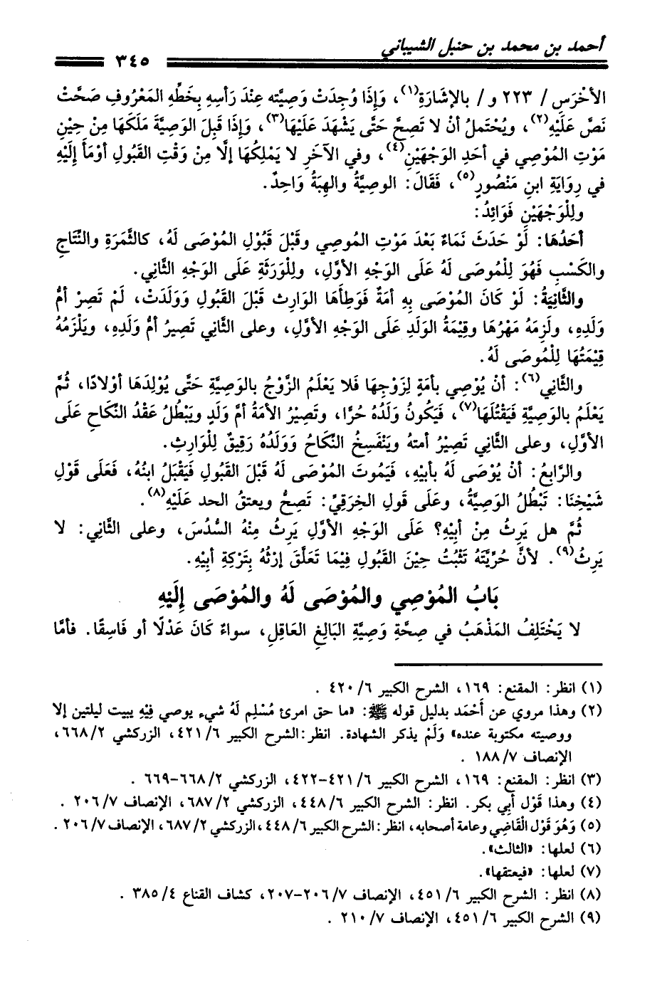 (¬8) انظر: الشرح الكبير 6/ 451، الإنصاف 7/ 206 - 207، كشاف القناع 4/ 385.