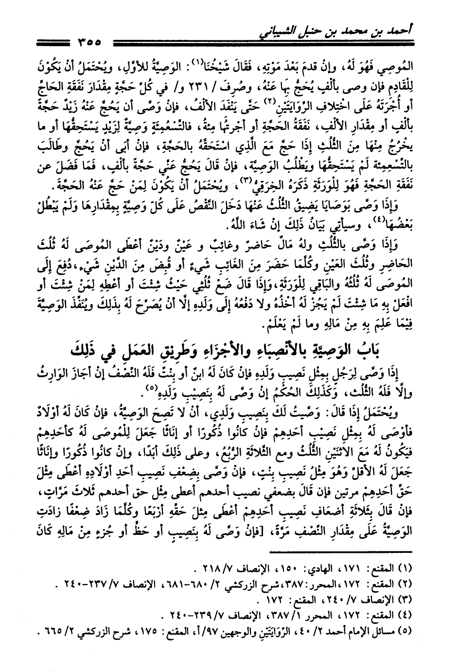 بَابُ الوَصِيَّةِ بالأنْصِبَاءِ والأجْزَاءِ وَطَرِيْقِ العَمَلِ في ذَلِكَ