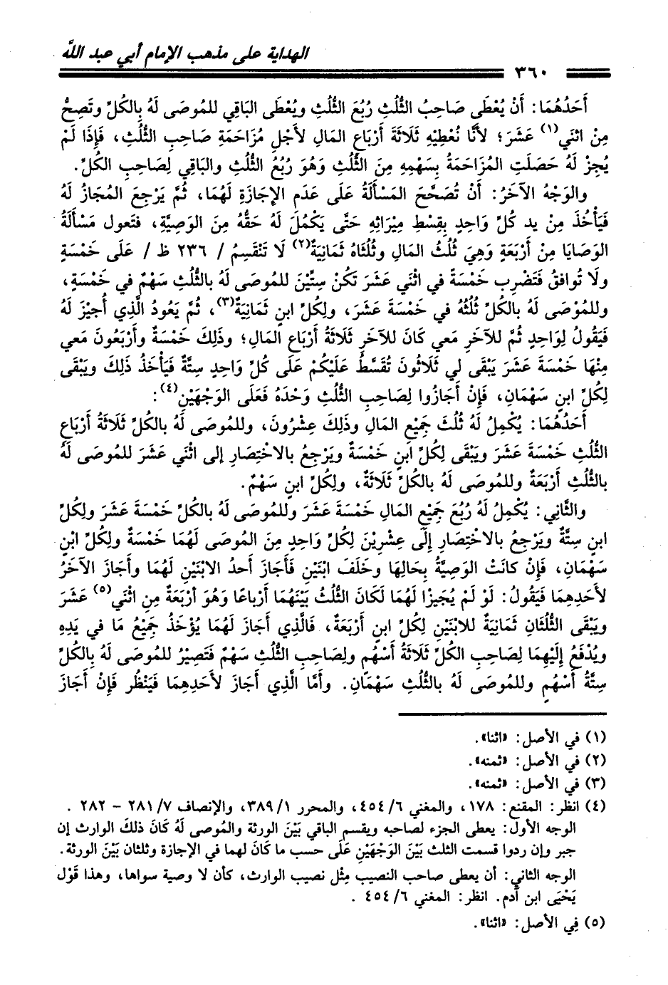 (¬4) انظر: المقنع: 178، والمغني 6/ 454، والمحرر 1/ 389، والإنصاف 7/ 281 - 282.