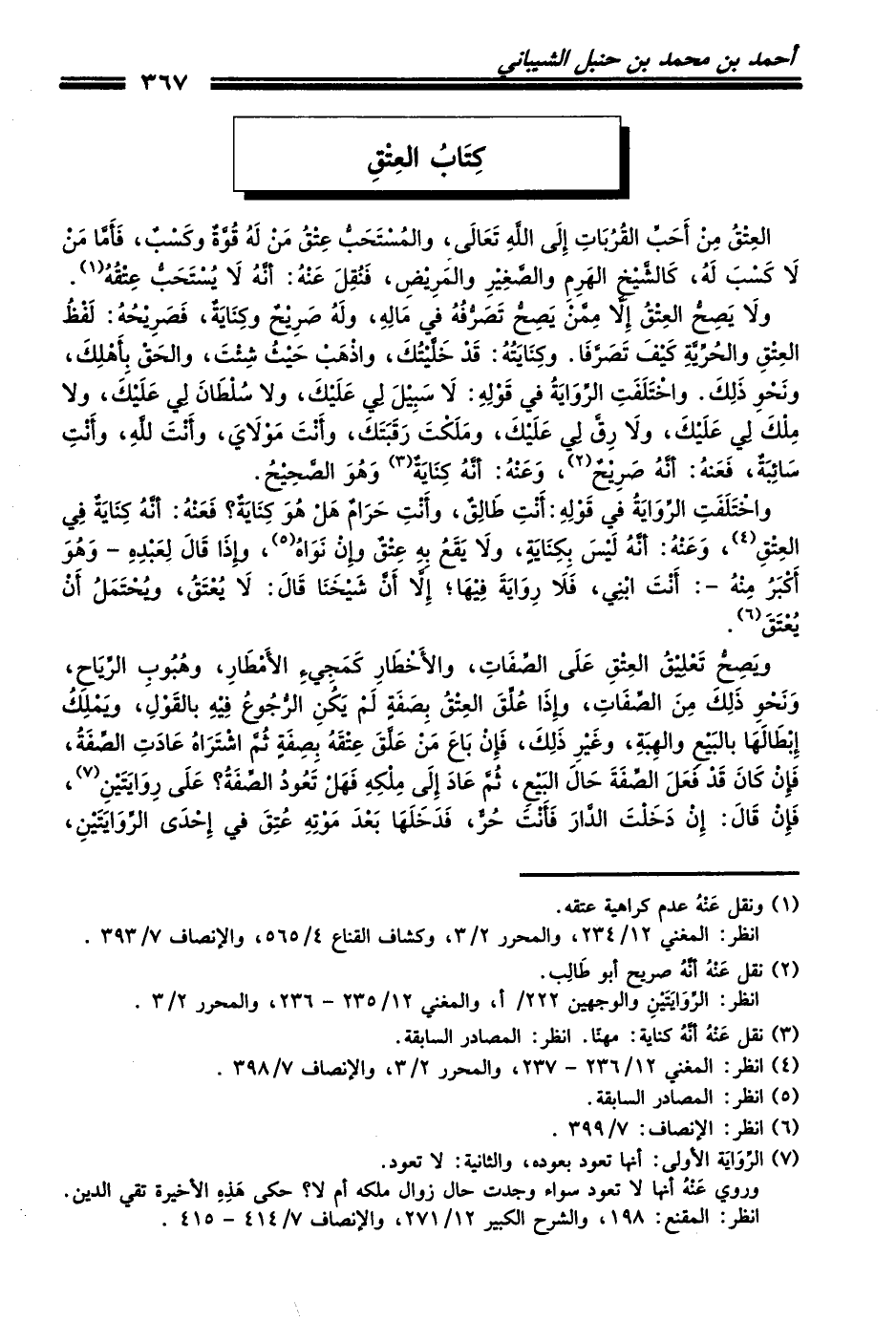 (¬4) انظر: المغني 12/ 236 - 237، والمحرر 2/ 3، والإنصاف 7/ 398.