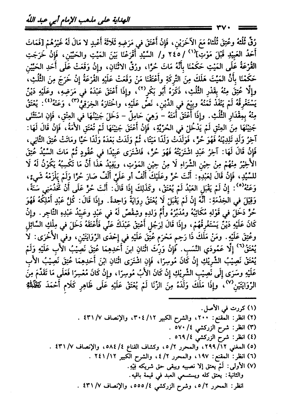 (¬2) انظر: المقنع: 200، والشرح الكبير 12/ 304، والإنصاف 7/ 431.