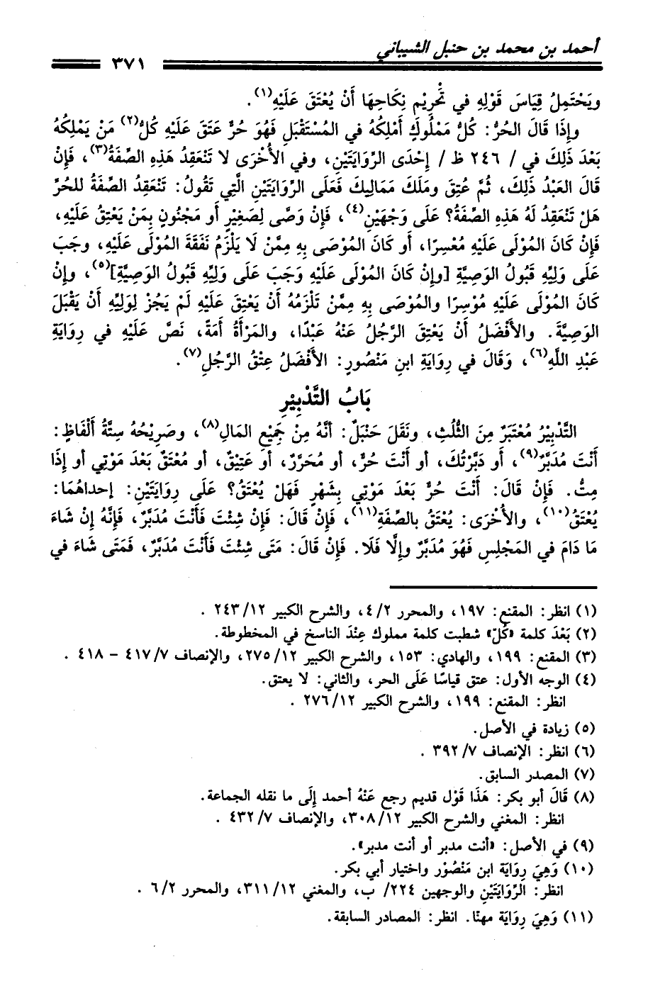 (¬1) انظر: المقنع: 197، والمحرر 2/ 4، والشرح الكبير 12/ 243.