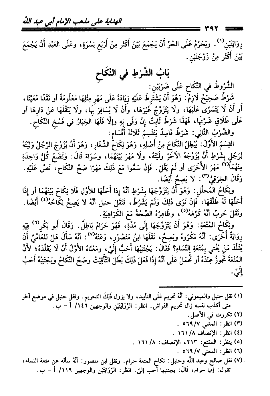 (¬7) نقل صالح وعبد الله وحنبل: نكاح المتعة حرام. ونقل ابن منصور: أنَّهُ سأله عن متعة النساء، تقول: إنها حرام، قَالَ: يجتنبها أحب إليّ. انظر: الرِّوَايَتَيْنِ والوجهين 119/ أ - ب.