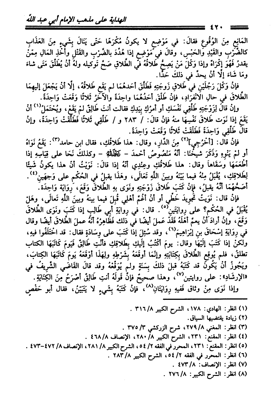 (¬4) انظر: المقنع: 231، الشرح الكبير 8/ 280، الإنصاف 8/ 468.