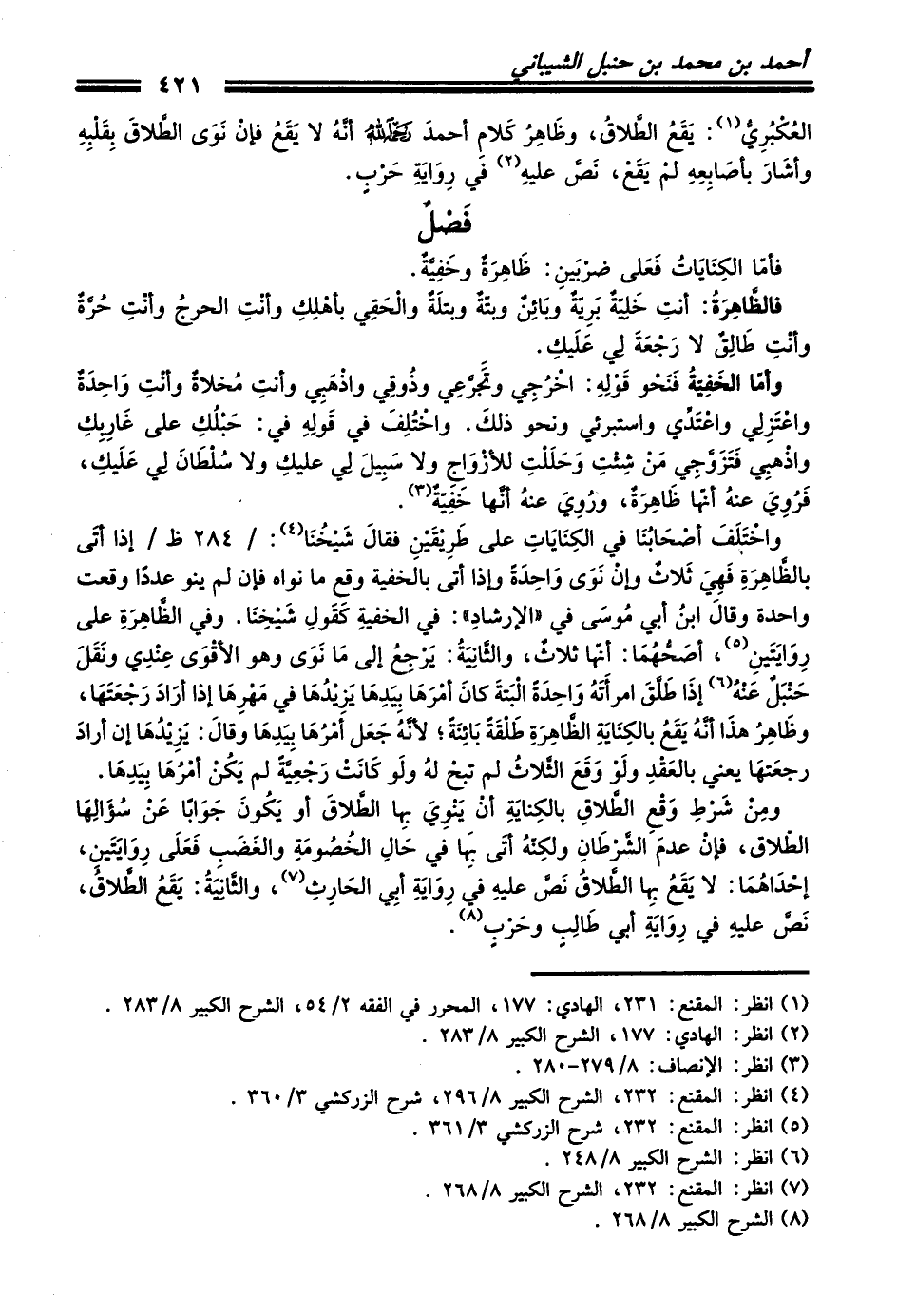(¬4) انظر: المقنع: 232، الشرح الكبير 8/ 296، شرح الزركشي 3/ 360.