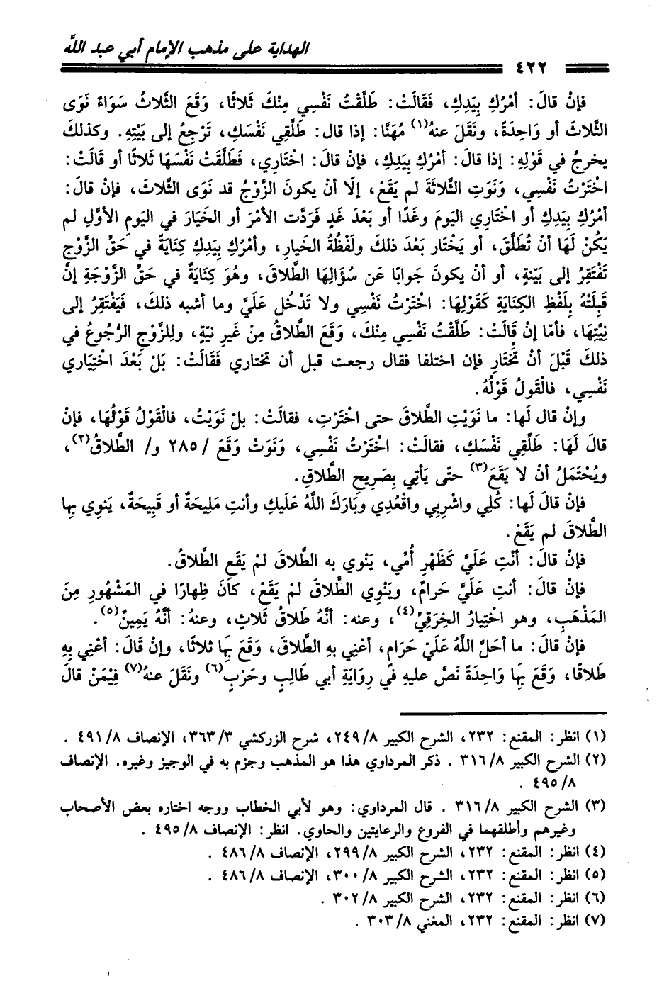 (¬4) انظر: المقنع: 232، الشرح الكبير 8/ 299، الإنصاف 8/ 486.