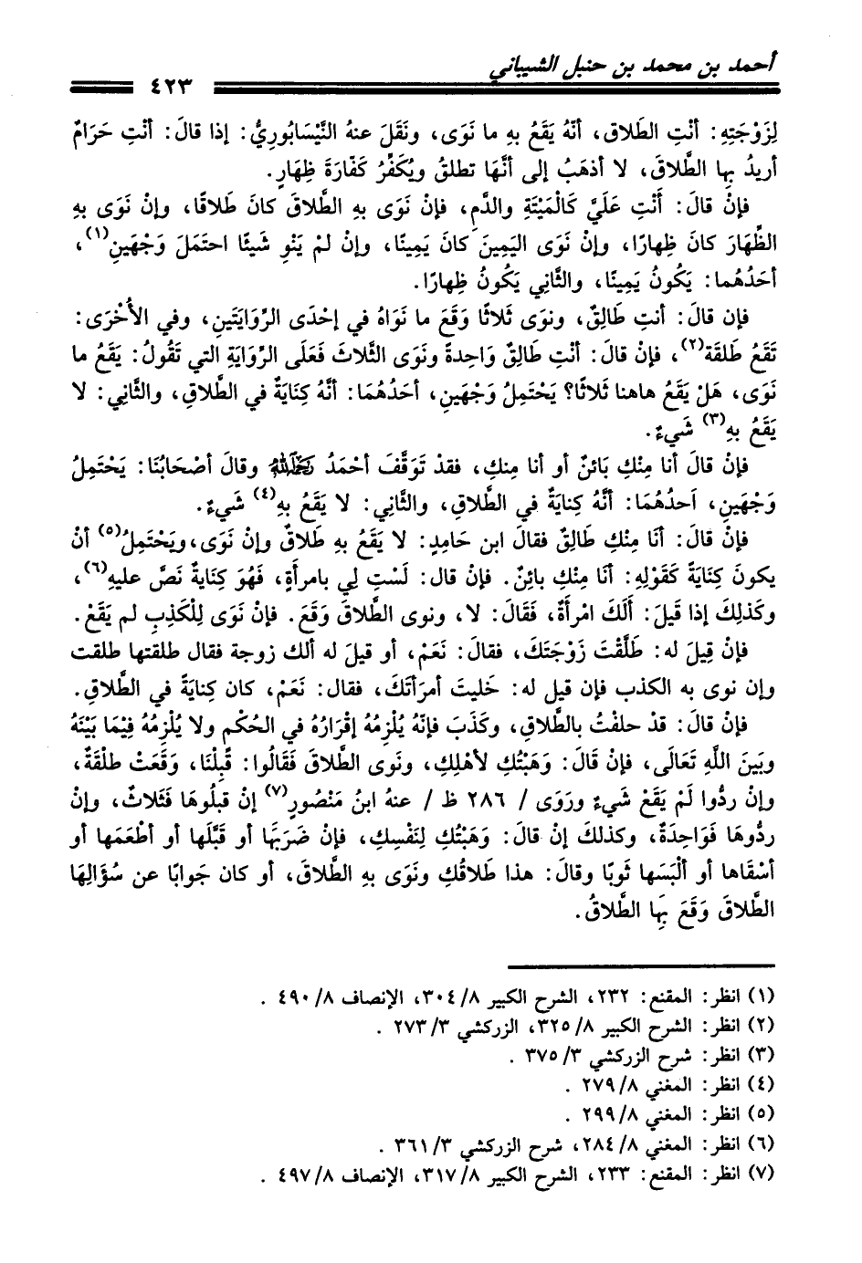 (¬7) انظر: المقنع: 233، الشرح الكبير 8/ 317، الإنصاف 8/ 497.