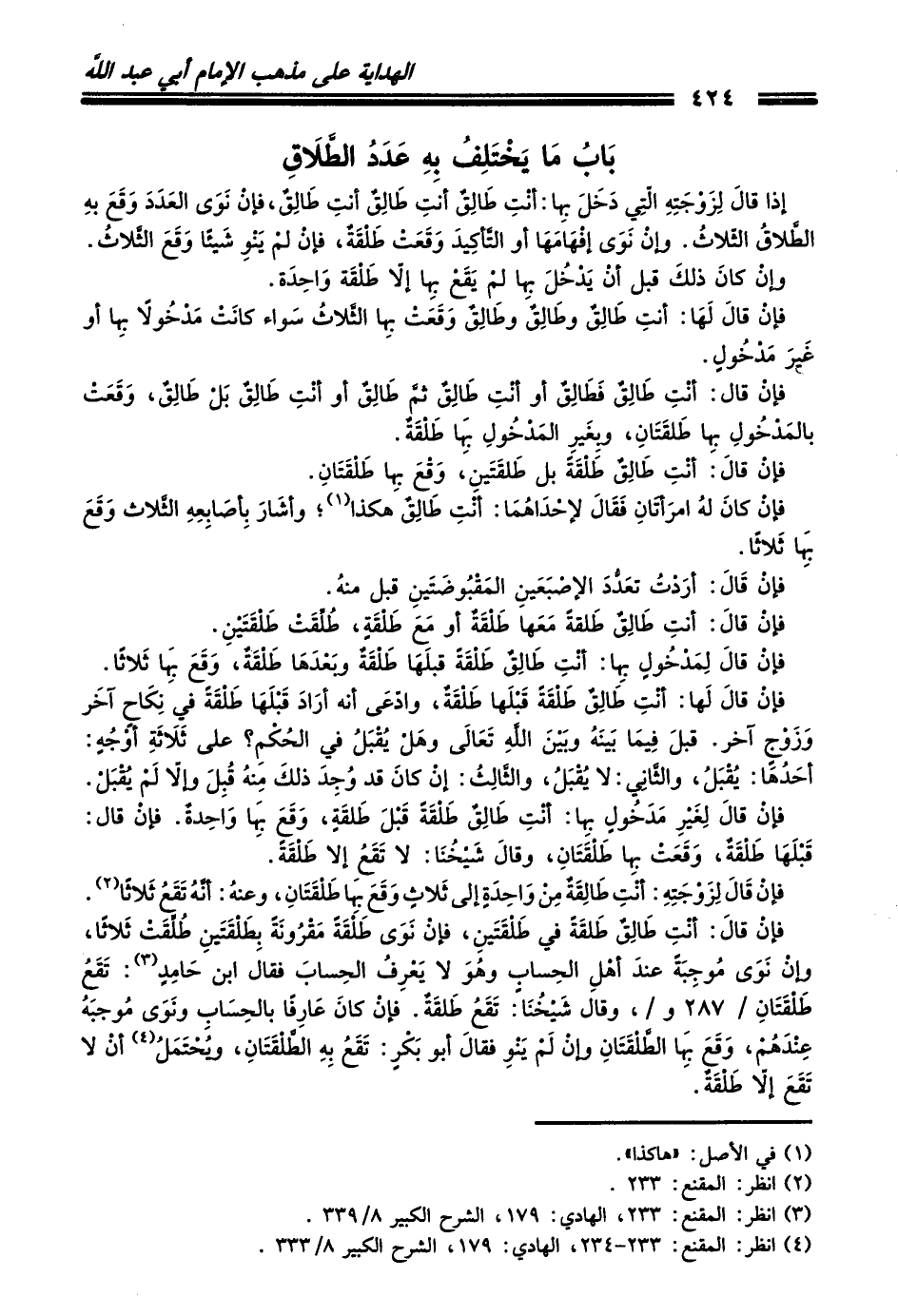 (¬4) انظر: المقنع: 233 - 234، الهادي: 179، الشرح الكبير 8/ 333.