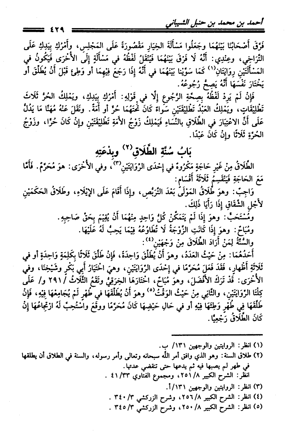 (¬5) انظر: الشرح الكبير 8/ 250، وشرح الزركشي 3/ 345.