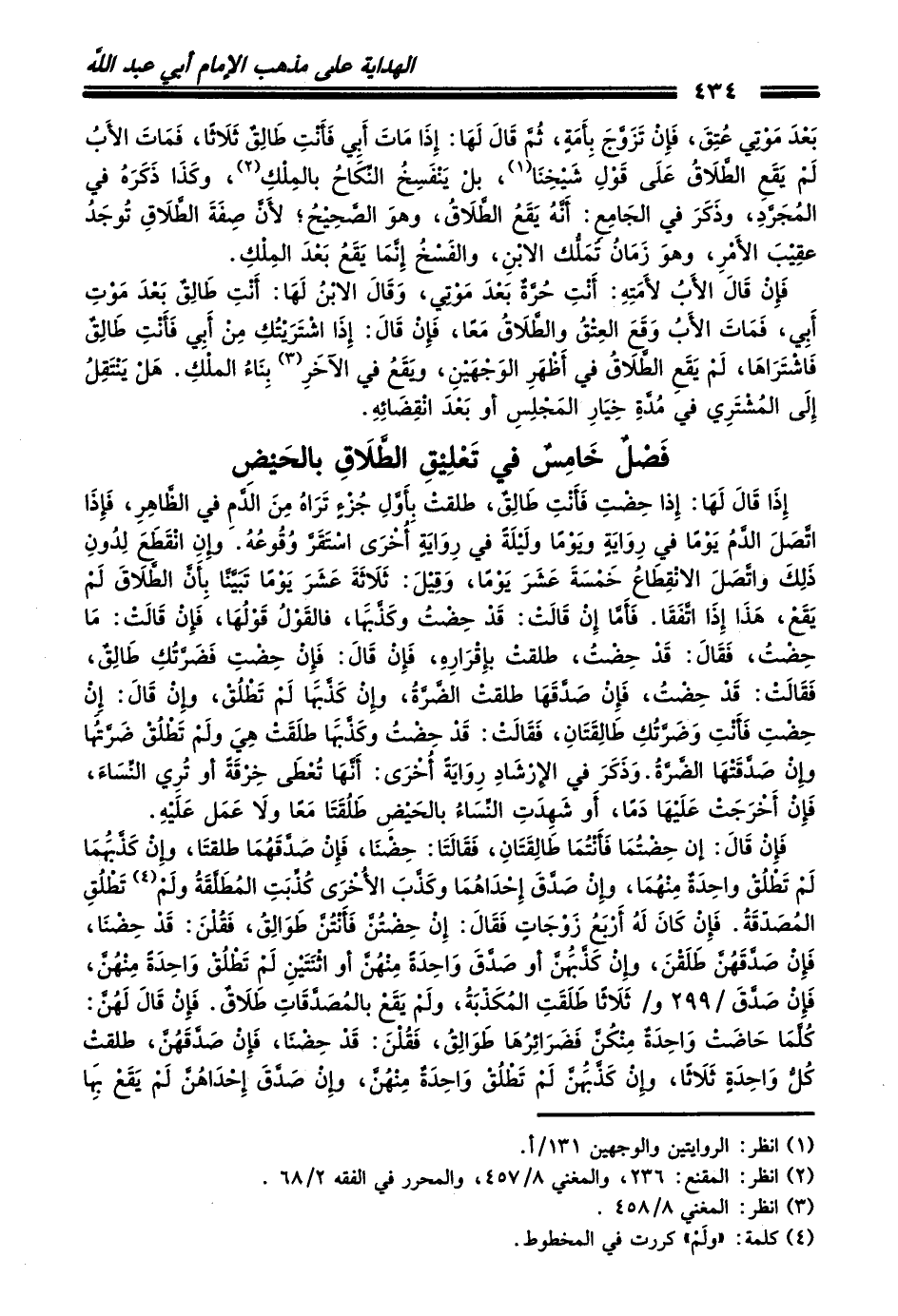 فَصْلٌ خَامِسٌ في تَعْلِيْقِ الطَّلاَقِ بالحَيْضِ
