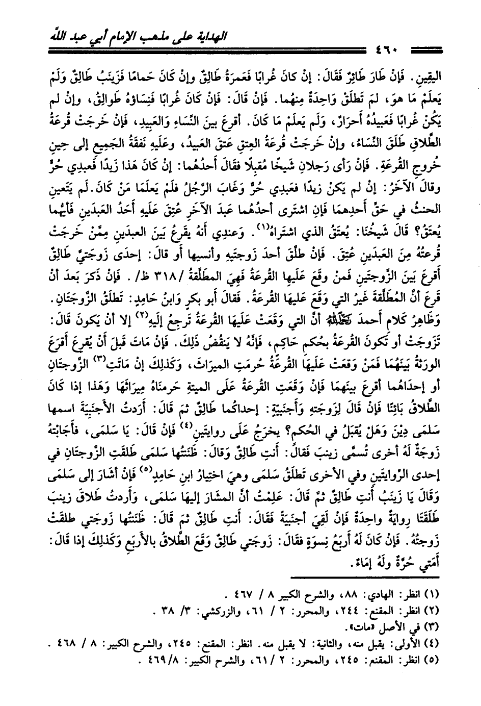 (¬5) انظر: المقنع: 245، والمحرر: 2/ 61، والشرح الكبير: 8/ 469.