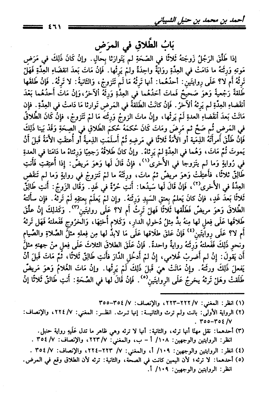(¬1) انظر: المغني: 7/ 222 - 223، والإنصاف: 7/ 354 - 355