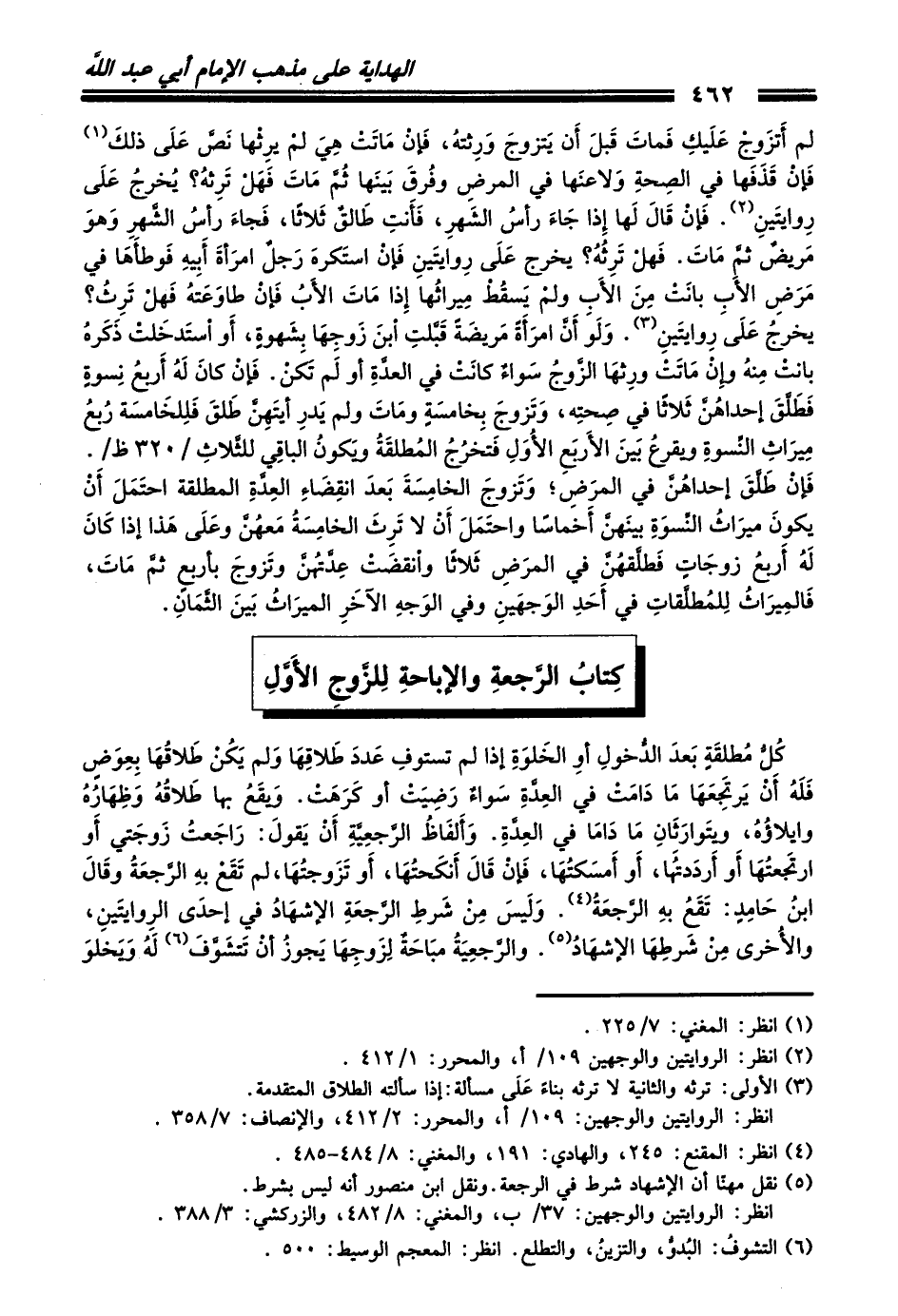 (¬5) نقل مهنّا أن الإشهاد شرط في الرجعة. ونقل ابن منصور أنه ليس بشرط.
