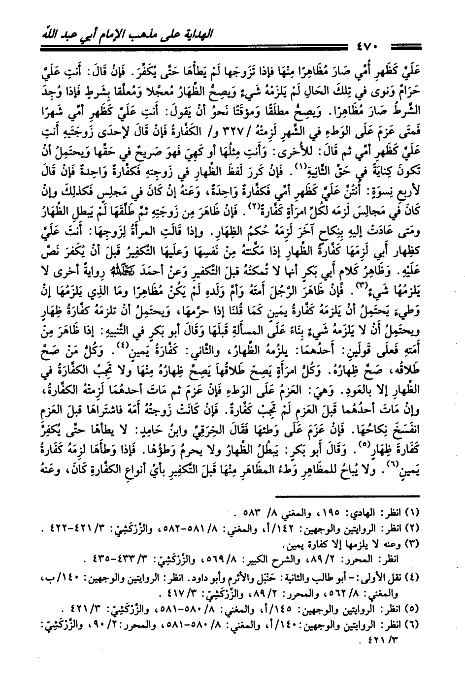 (¬6) انظر: الروايتين والوجهين: 140/أ، والمغني: 8/ 580 - 581، والمحرر: 2/ 90، والزَّرْكَشِيّ: 3/ 421.
