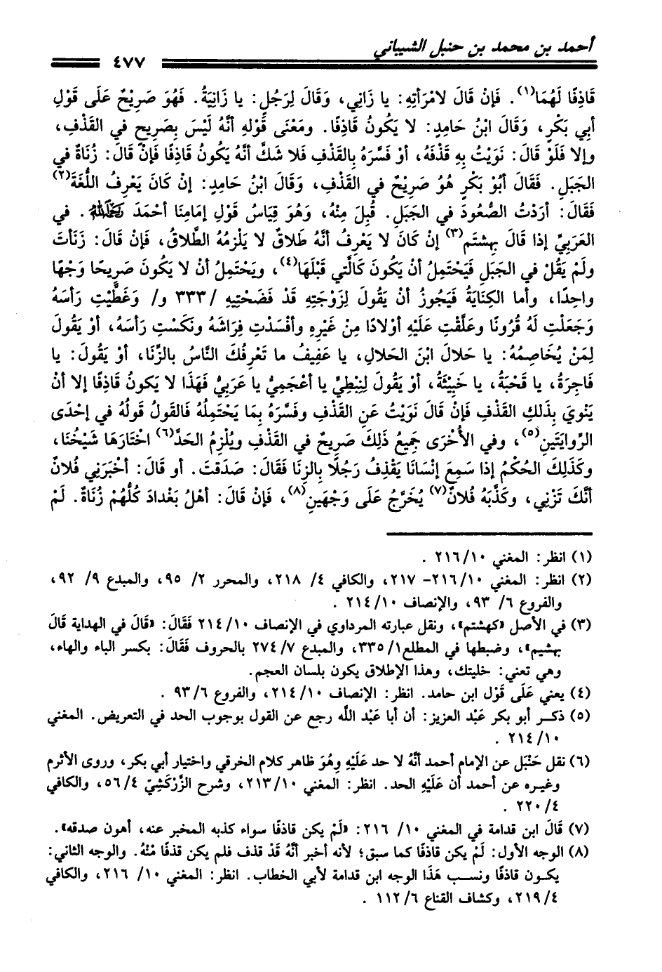 (¬5) ذكر أبو بكر عَبْد العزيز: أن أبا عَبْد الله رجع عن القول بوجوب الحد في التعريض. المغني 10/ 214.