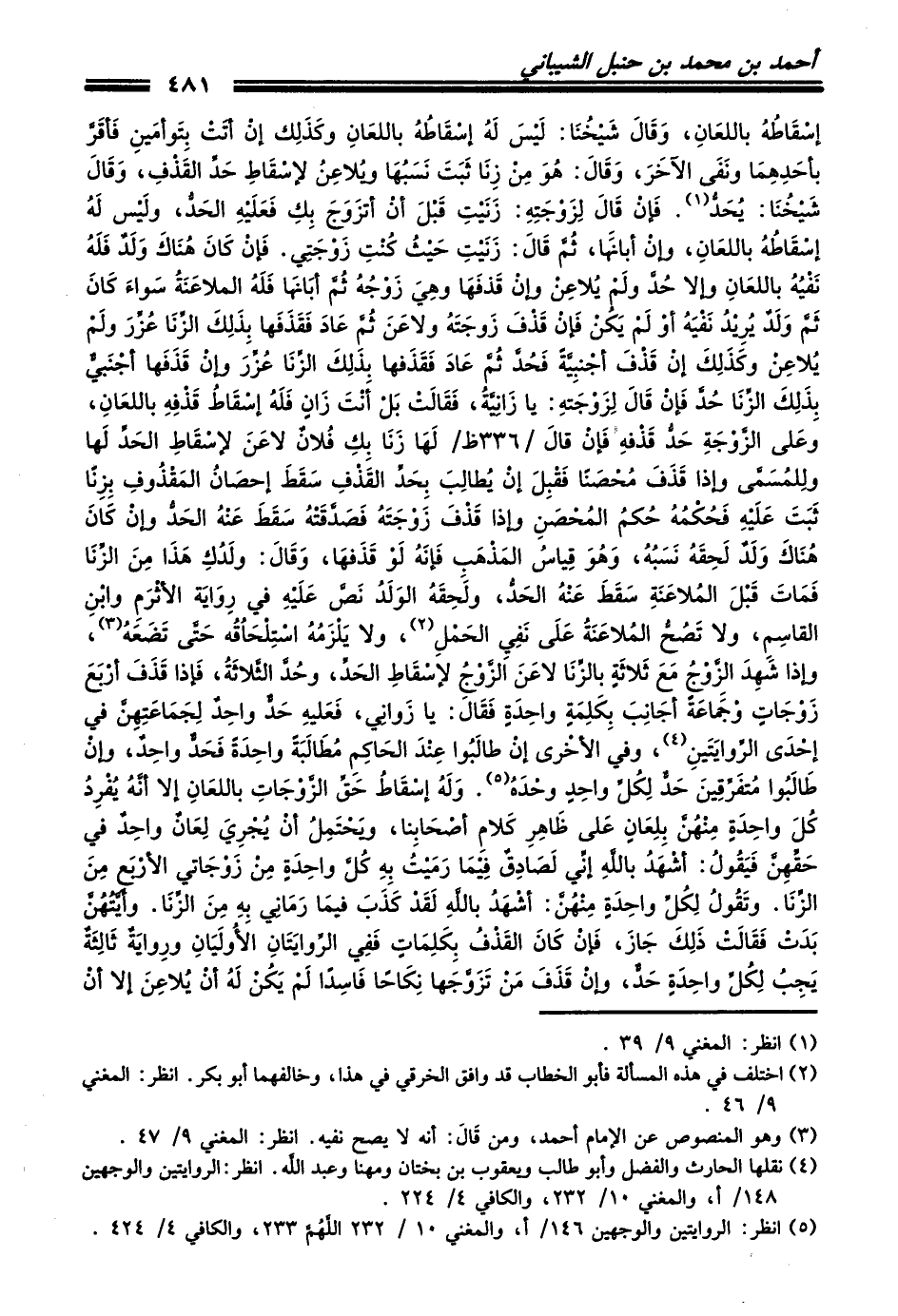 (¬5) انظر: الروايتين والوجهين 146/ أ، والمغني 10/ 232 _ 233، والكافي 4/ 424.