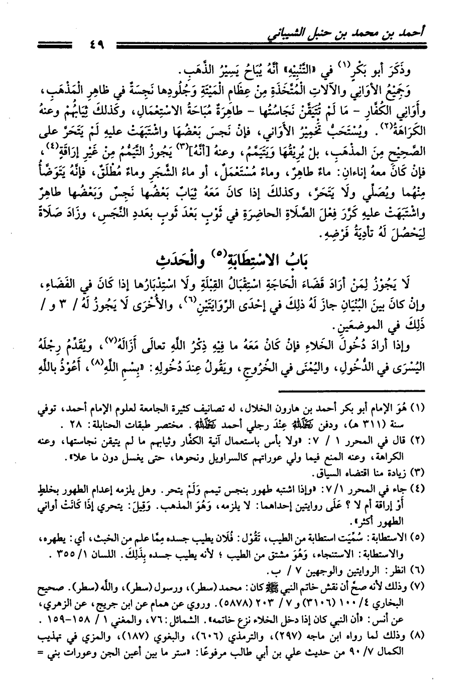 (¬1) هُوَ الإمام أبو بكر أحمد بن هارون الخلال، له تصانيف كثيرة الجامعة لعلوم الإمام أحمد، توفي سنة (311 هـ)، ودفن رَحِمَهُ اللهُ عِنْدَ رجلي أحمد رَحِمَهُ اللهُ. مختصر طبقات الحنابلة: 28.