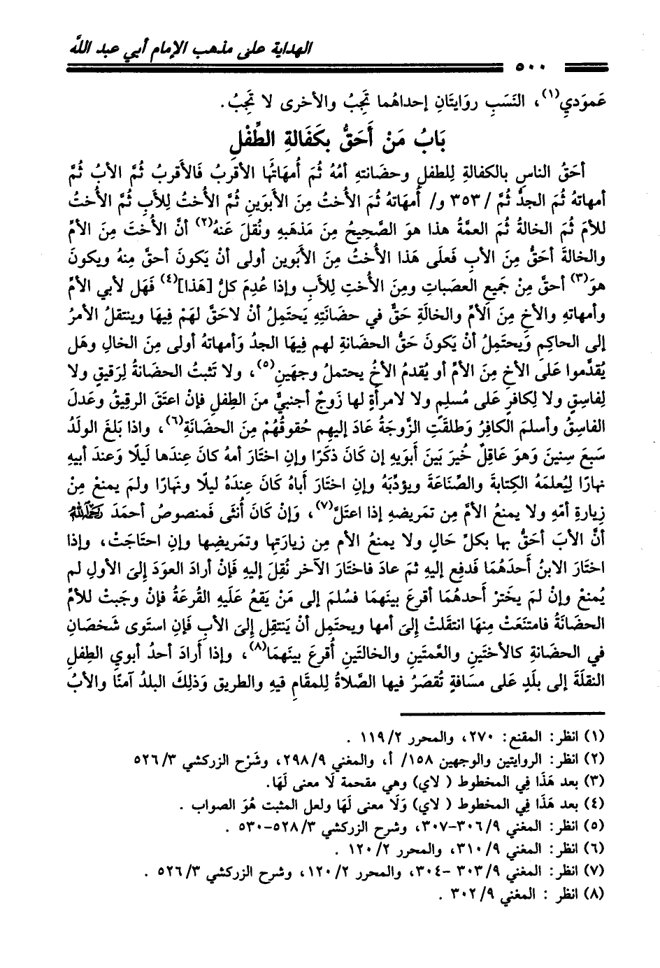 (¬7) انظر: المغني 9/ 303 - 304، والمحرر 2/ 120، وشرح الزركشي 3/ 526.